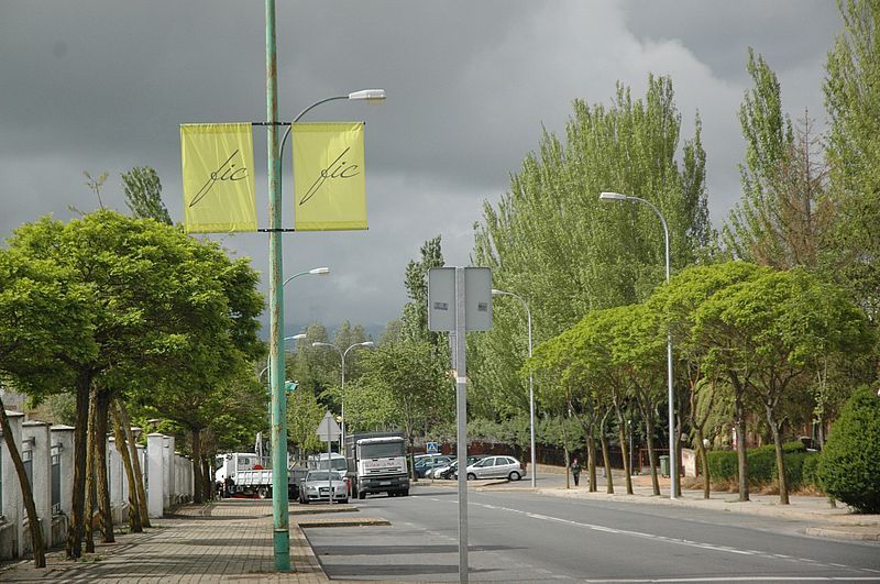 La Feria de la Industria Cárnica, que se celebrará en el Recinto Ferial durante los días 8, 9, 10 y 11 de junio, ya se ha hecho visible en la localidad gracias a los carteles anunciadores que desde esta mañana se están empezando a colocar en las farolas de la calle Filiberto Villalobos. Las banderolas, que se distribuirán desde el Recinto Ferial hasta la zona en la que se ubica el edificio de El Reloj, actual sede del Ayuntamiento, son de carácter minimalistas y están impresas en diferentes colores, casi una treintena, pudiéndose apreciar en ellas el logotipo de la FIC.