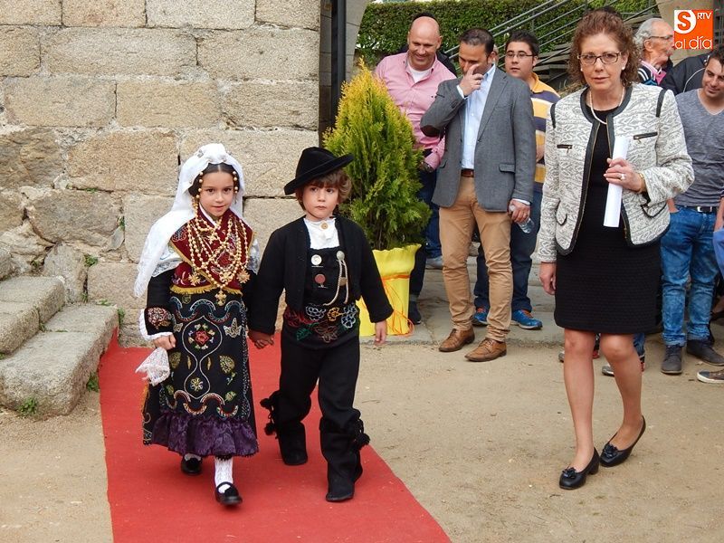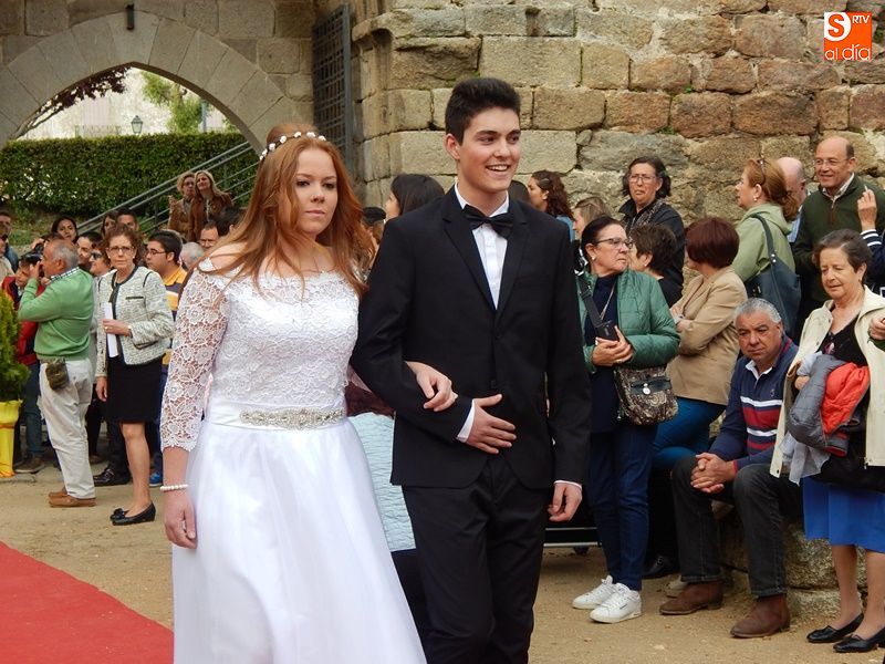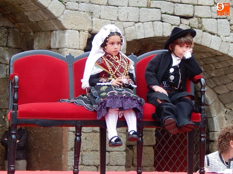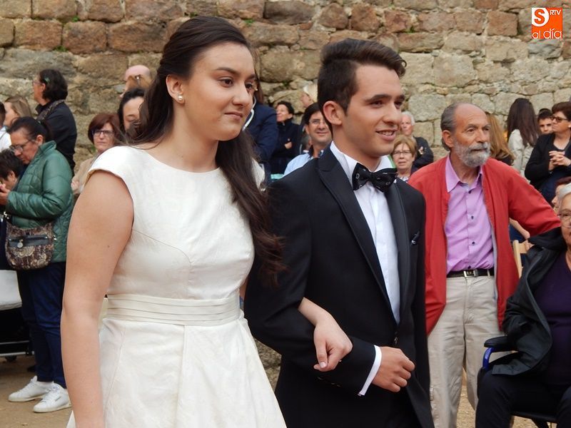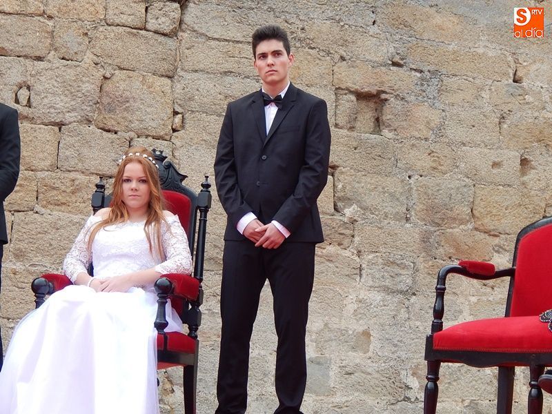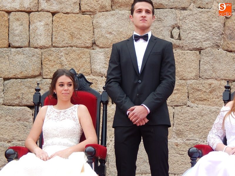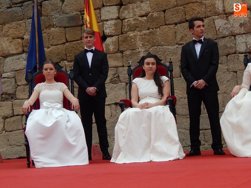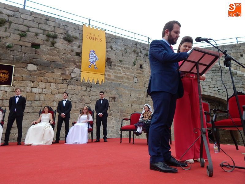Los niños vestidos de charros han sido los encargados de abrir el paso de la Corte de Honor que este año está formada por Sonia Prieto Merchán, como Reina de las Fiestas, acompañada por Pablo Hernández Zurdo. Como damas de honor, Alejandra Jorge Sánchez, Paula Prieto Merchán, Natalia García Benito y Nerea Sánchez Hernández, acompañados a su vez por Javier Fuentes Martín, Alfonso Velasco Escudero, Óscar Pascual Vicente y Luis Martín Falagán. La reina y damas de la pasada edición han cedido el testigo, y la corona, en un acto en el que también se ha hecho entrega del premio al ganador del concurso del Cartel del Corpus, accésit dotado con 400 euros y que ha recaído en Pablo López. Premio que ha sido recogido por su hijo.