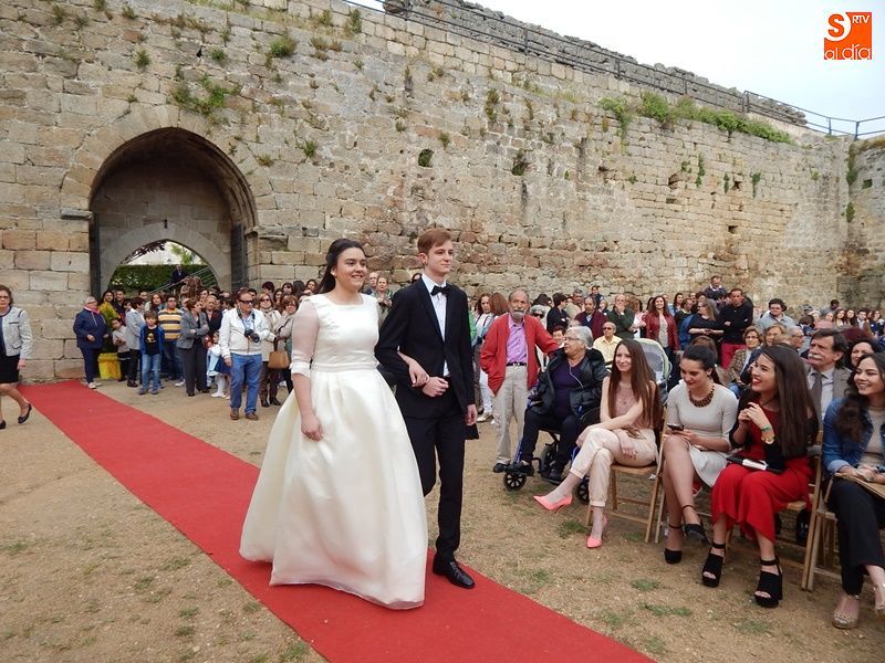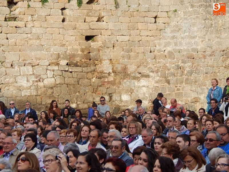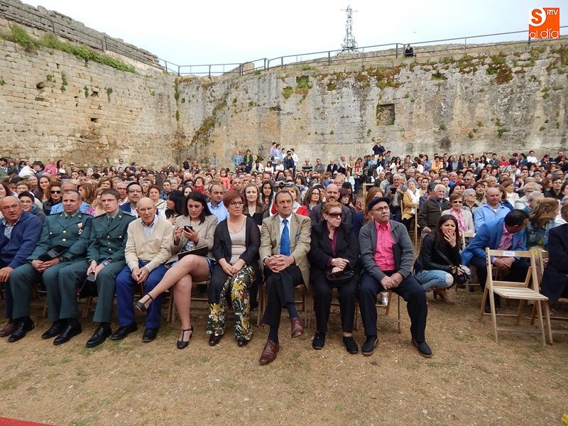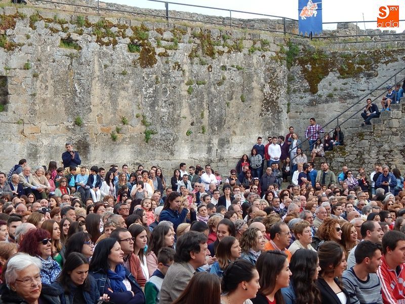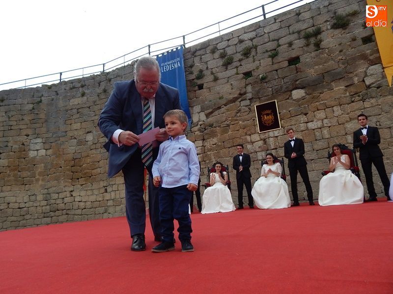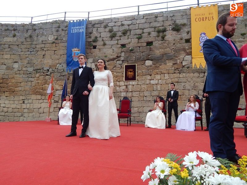 Ledesma estalla en fiestas para celebrar los esperados Corpus 2016 y lo hace siguiendo la tradición. Con el Patio de Armas de La Fortaleza engalanado para la ocasión, Ledesma ha celebrado este miércoles el arranque de sus fiestas con el pregón, a cargo este año del ledesmino Ramón González Monete, que ha hecho gala de ser un libro abierto de la historia y andanzas de la villa, y la proclamación de la Reina y Damas de Honor de las Fiestas. Acto inaugural que ha contado, entre otros, con la presencia del presidente de la Diputación de Salamanca, Javier Iglesias; diputados como Carlos García Sierra, Román Hernádez y Jesús María Ortiz, así como alcaldes y concejales de municipios vecinos. El alcalde, José Prieto, durante su intervención ha deseado que "guardemos todos un bonito recuerdo de las fiestas de este año", avanzando además que, pese "a los difíciles momentos que nos está tocando vivir", la villa tiene en cartera proyectos como el de CleanZinc que "saldrá adelante".