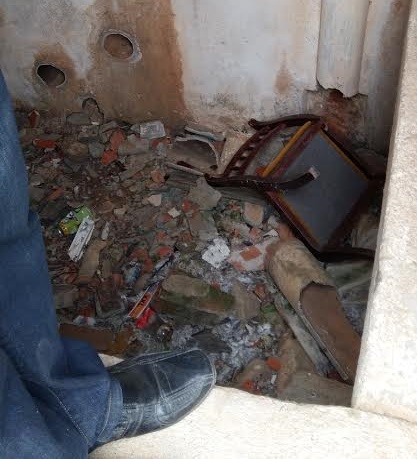 Vertedero incontrolado como el que se ha creado en las inmediaciones del antiguo depósito del agua, en un estado de ruina y abandono total, y donde el acceso es posible ante la ausencia del vallado que lo impida, con la consiguiente peligrosidad especialmente para los niños, y cuya demolición o derribo total por parte del Ayuntamiento también ha sido solicitado.