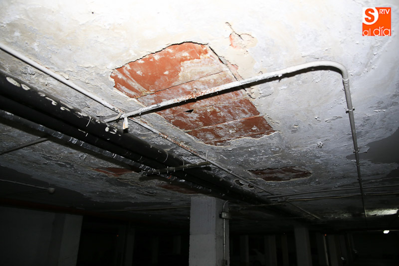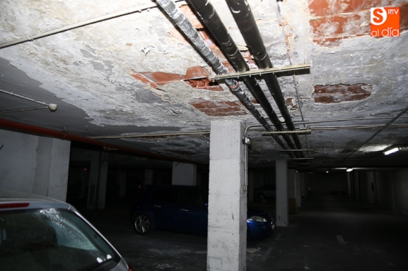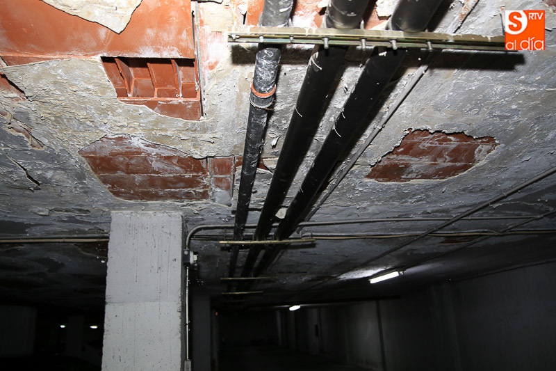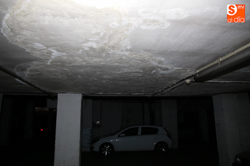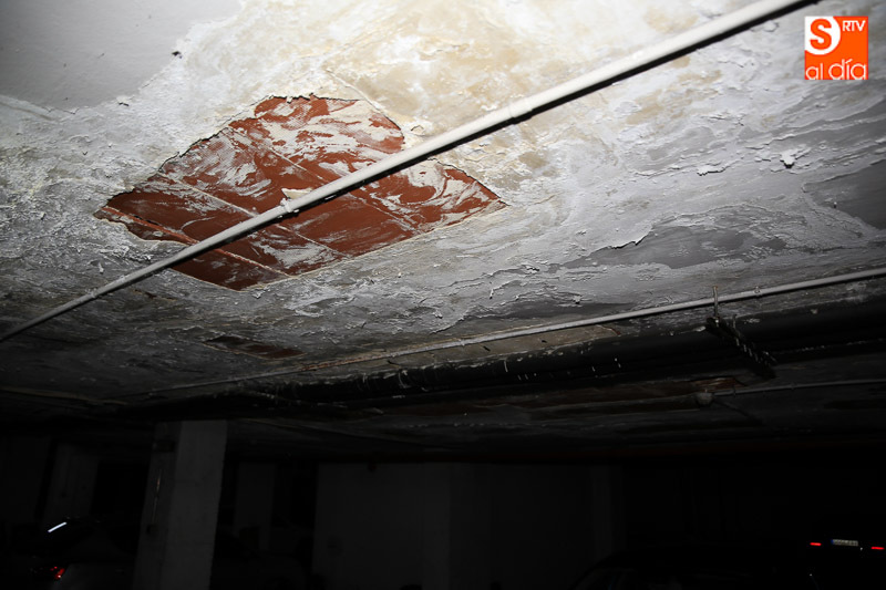 A pesar de la intervención realizada para subsanar estos problemas, siguen aflorando trozos de yeso, moho y bovedillas del forjado que se precipitan sobre los coches aparcados en el garaje, como se aprecian en las imágenes de SALAMANCArtv AL DÍA