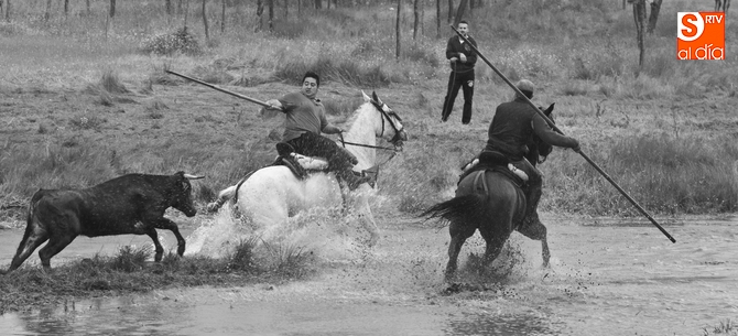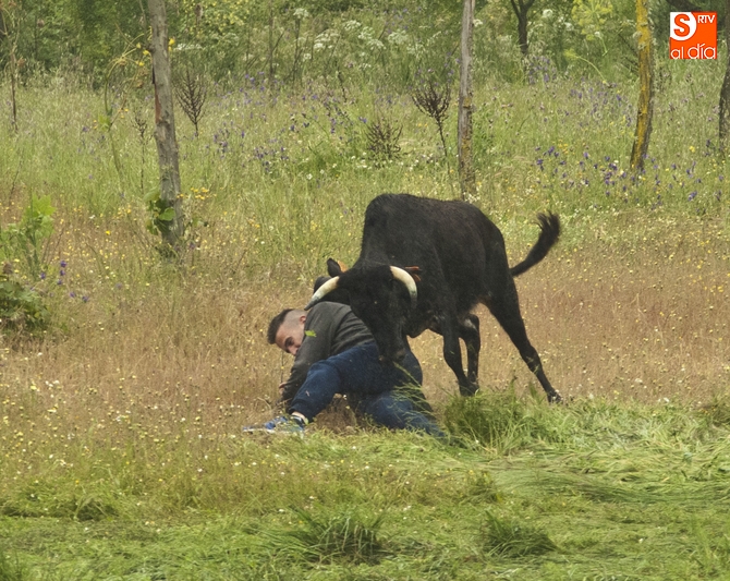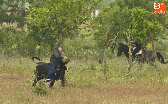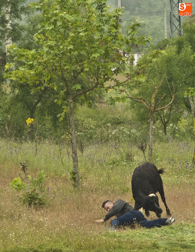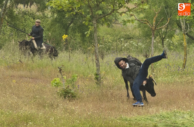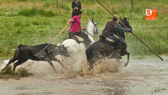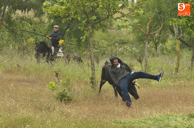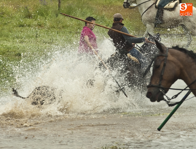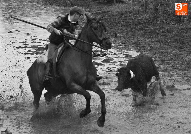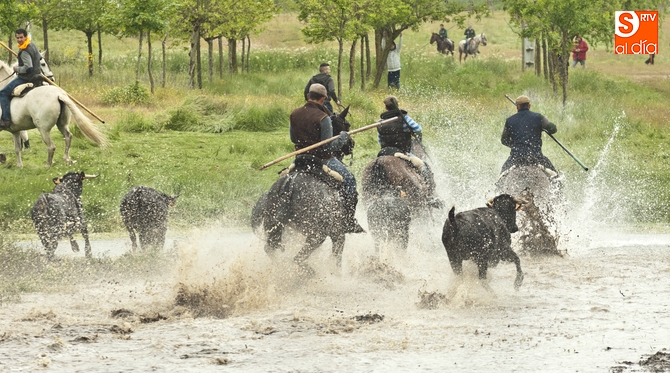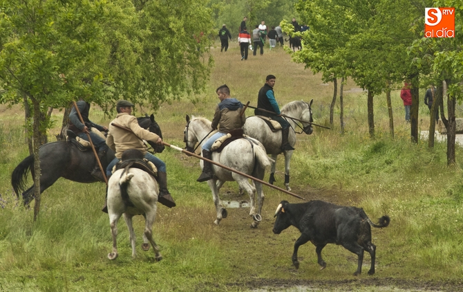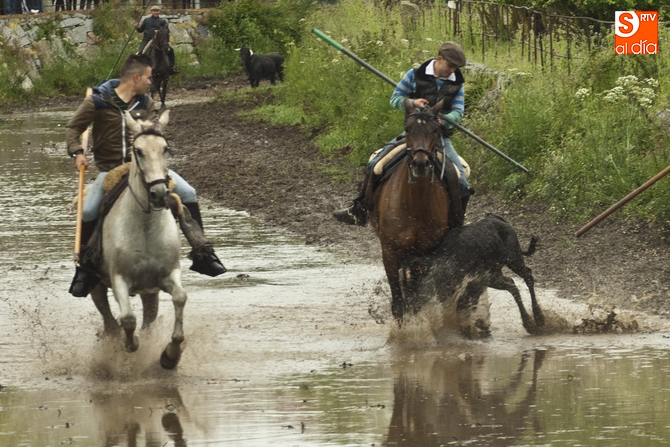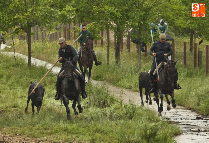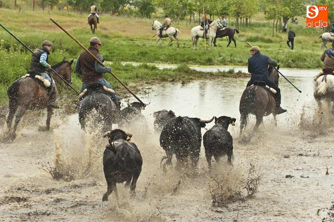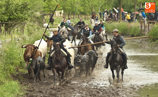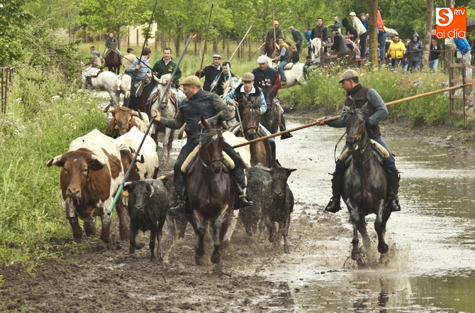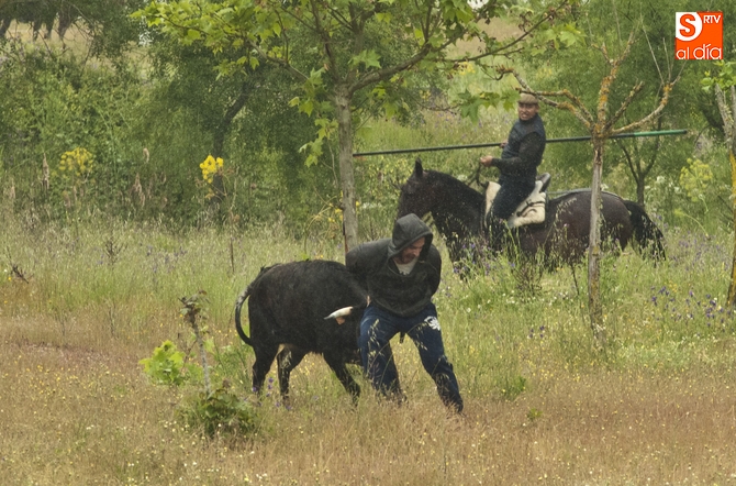 SANCTI-SPÍRITUS | La cantidad de agua en el recorrido debido a las intensas lluvias de la noche anterior acentuó el atractivo del encierro a caballo con ganado de Doña Mercedes Pérez-Tabernero y bueyes de Hermanos Sánchez Oviedo