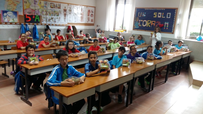 Los alumnos disfrutan de un taller donde se pretende mostrar de una manera lúdica y divertida los beneficios de un consumo diario de frutad y hortalizas