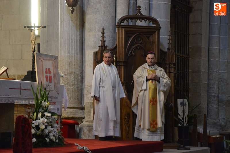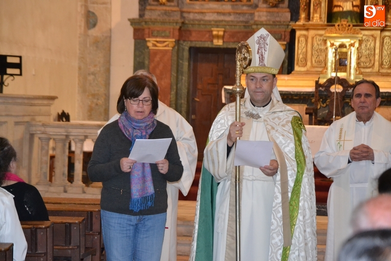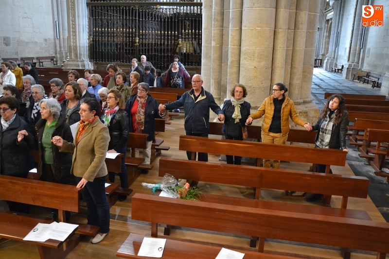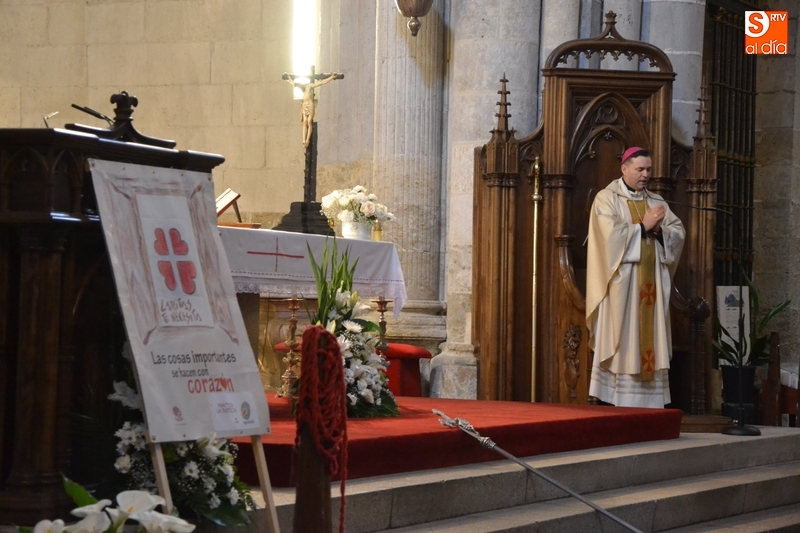 El acto arrancó en la Capilla Mayor del Seminario Diocesano con unas palabras de parte de integrantes de las entidades de acción socio-caritativa de la Diócesis: Cáritas, Manos Unidas y las Conferencias de San Vicente de Paúl (en el plan original, estas palabras iban a haber sido leídas al paso por el Puente Mayor).