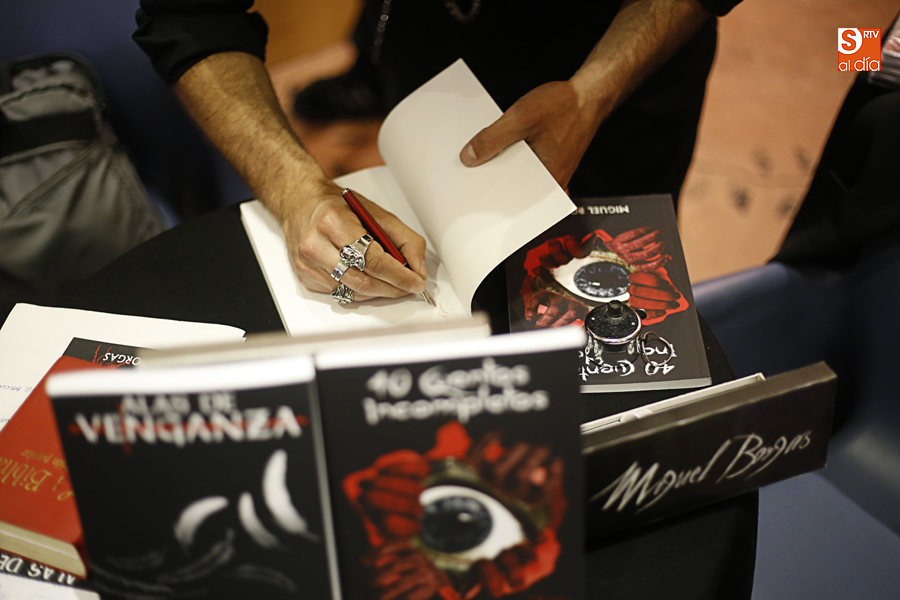 En esta cuarta presentación, la última que tiene lugar en la ciudad charra, Miguel Borgas, el autor, y Paco Jiménez, creador del próximo festival de música "Tres Acordes Fest", han hablado de "Alas de Venganza" pero de una forma especial: desde la perspectiva de la música, y teniendo en cuenta a que la novela tiene mucha influencia de ese medio tan particular. Paco Jiménez es un experto en el tema y ha descubierto como, muchas veces, las influencias de distintos medios enriquecen una obra.