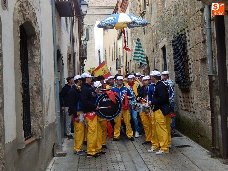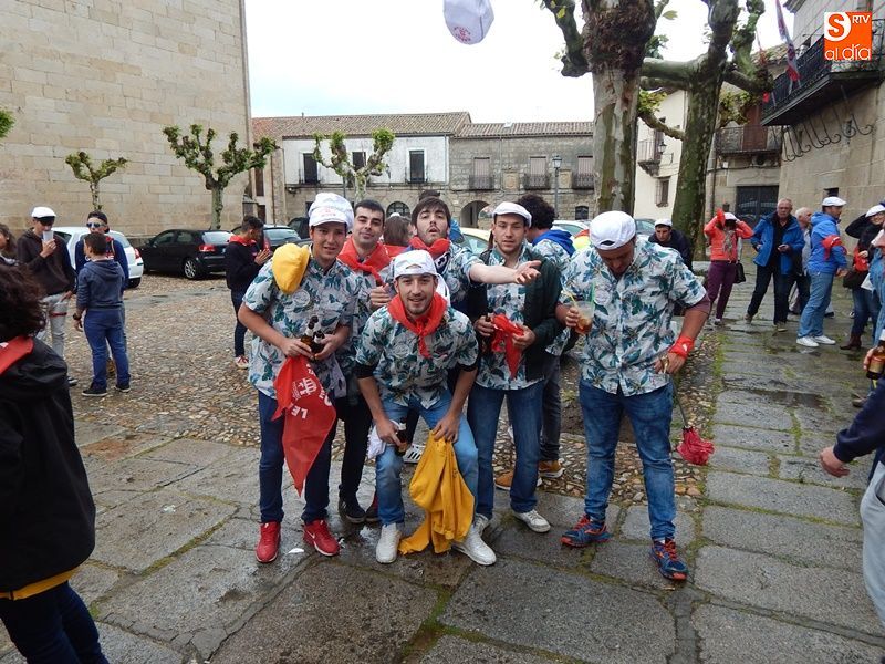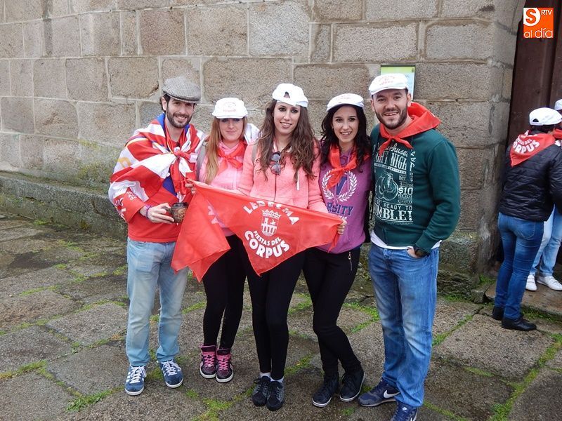 Las pandas de Ledesma toman el mando en una jornada que se ha visto deslucida por la continua amenaza de lluvia. No obstante, al mal tiempo, buen ambiente, y las pandas no han faltado a la concentración en la Plaza Mayor para la tradicional entrega de gorras y pañoletas del Corpus.