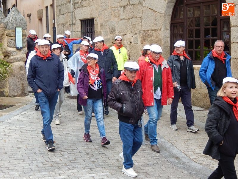 Encuentro al que también se ha sumado la charanga para animar la caminata hasta el prao de la villa para ver a los toros que este domingo saldrán en los espantos, aunque en esta ocasión, además de la bota y la mochila para la merienda, ha tocado portar paraguas y chubasquero para resguardarse de la lluvia.