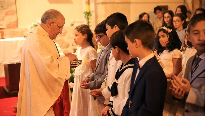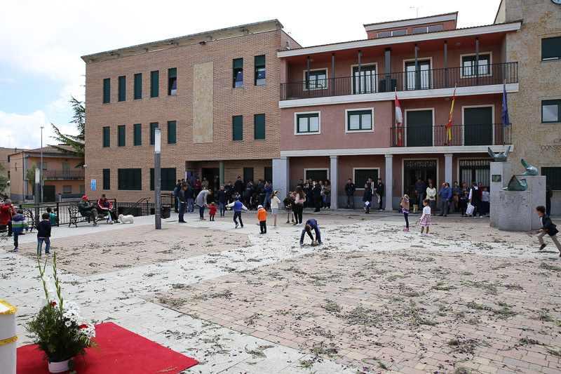 Carbajosa ha celebrado este domingo una solemne misa cantada a cargo de la Coral Vicente Espinel y la posterior y tradicional procesión, acompañada por la Agrupación Musical de la localidad y los niños y niñas de Primera Comunión en una jornada que comenzó con el reparto de tomillo
