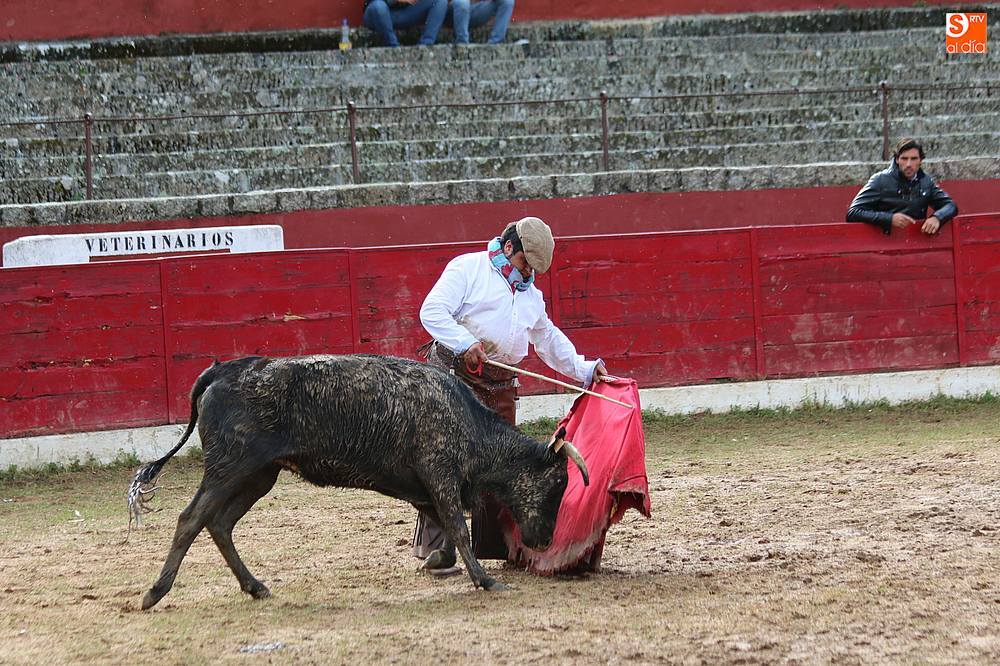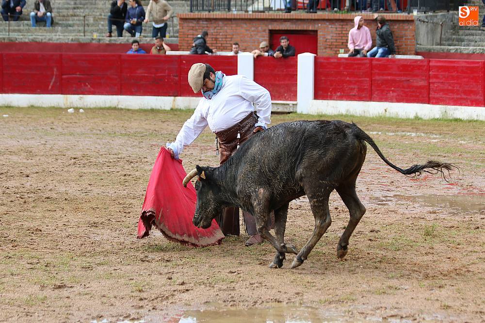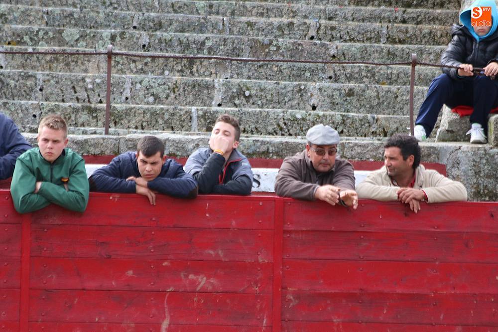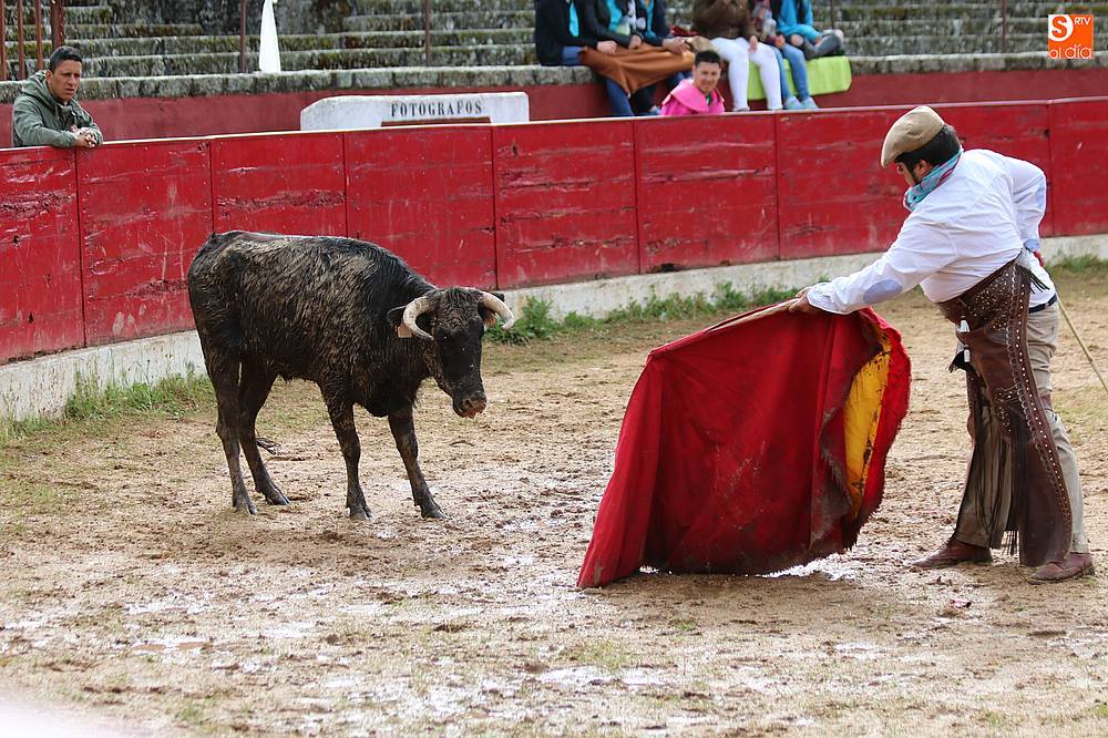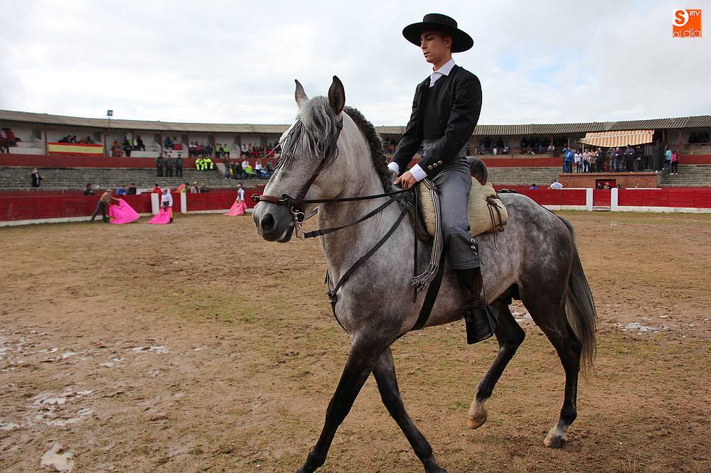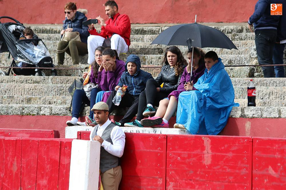 El primero en salir al embarrado albero vitigudinense era Huertos, seguido de Pablo Cabezas y Carvajal. Todos ellos cumplieron con creces, demostrando raza y valor, sintiéndose toreros por momentos y arrancando algún que otro olé entre la afición. Al finalizar, saludaron al público y dieron la vuelta al ruedo bajo el aplauso de los tendidos.