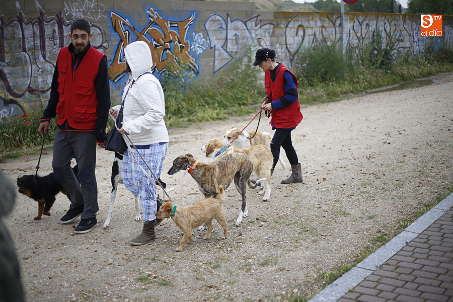 Ni la lluvia intermitente de esta jornada de domingo ha impedido la ruta de la quedada más solidaria organizada por La Manada Canina de Salamanca. La quedada ha partido de la calle Pradillo junto al paseo fluvial a orillas del río Tormes.