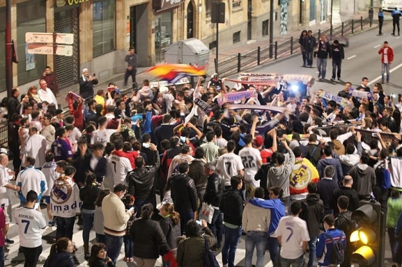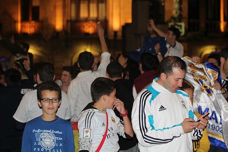 Los seguidores del Real Madrid se echaron a las calles de Salamanca para celebrar la undécima Copa de Europa del club blanco. Los aficionados se concentraron en la zona alta de la Gran Vía, cerca de la escultura dedicada al empresario. Banderas blancas del Real Madrid y españolas ondeaban junto a los cánticos de los merengues.