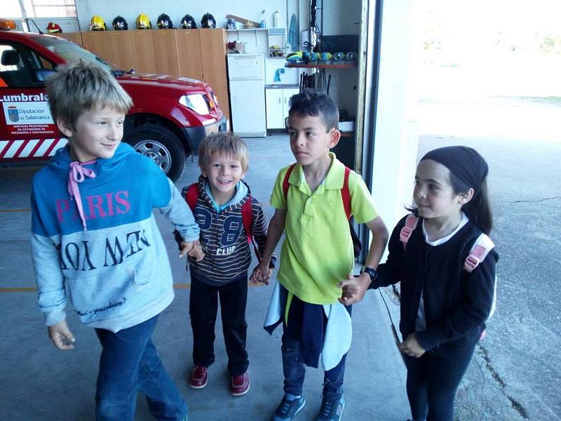 Escolares de las localidades de Bañobárez y Sobradillo conocieron este martes las instalaciones del Parque de Bomberos de Lumbrales, así como los vehículos que utilizan los voluntarios de esta unidad y s