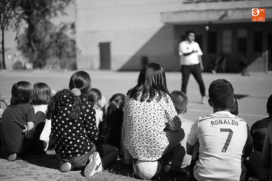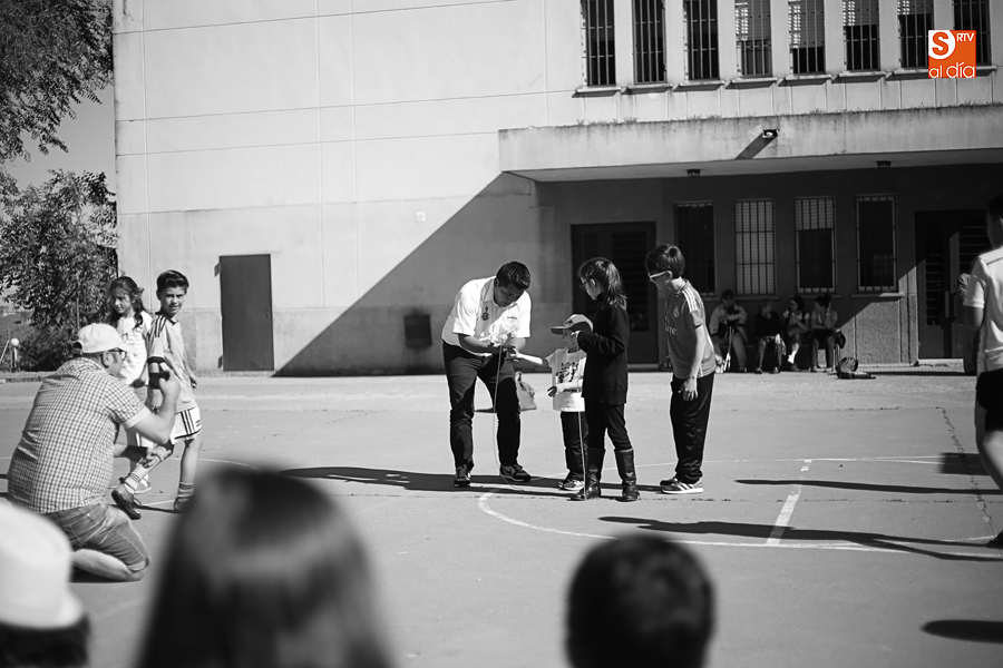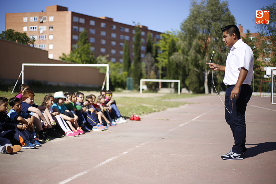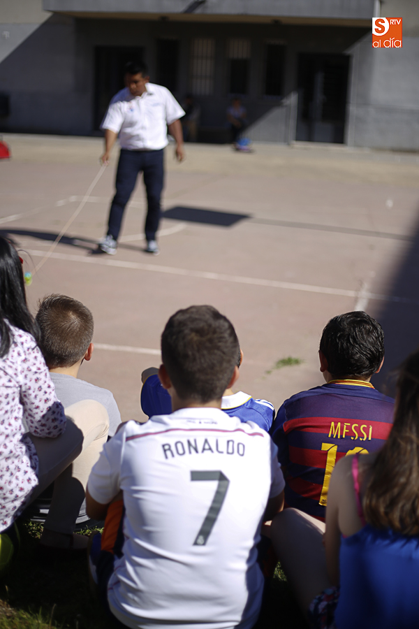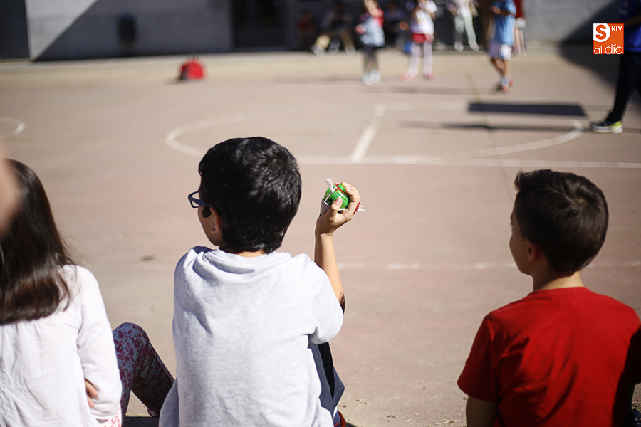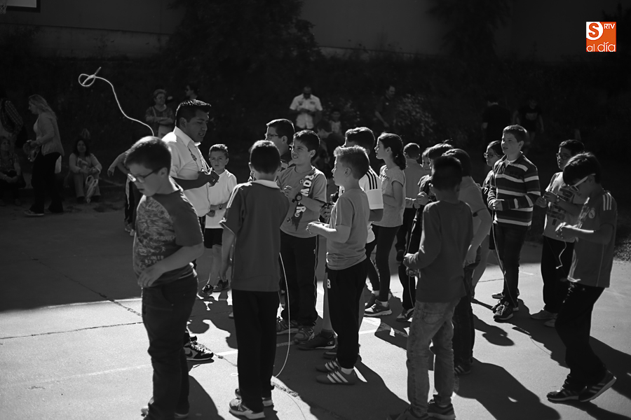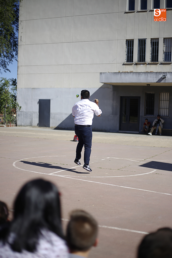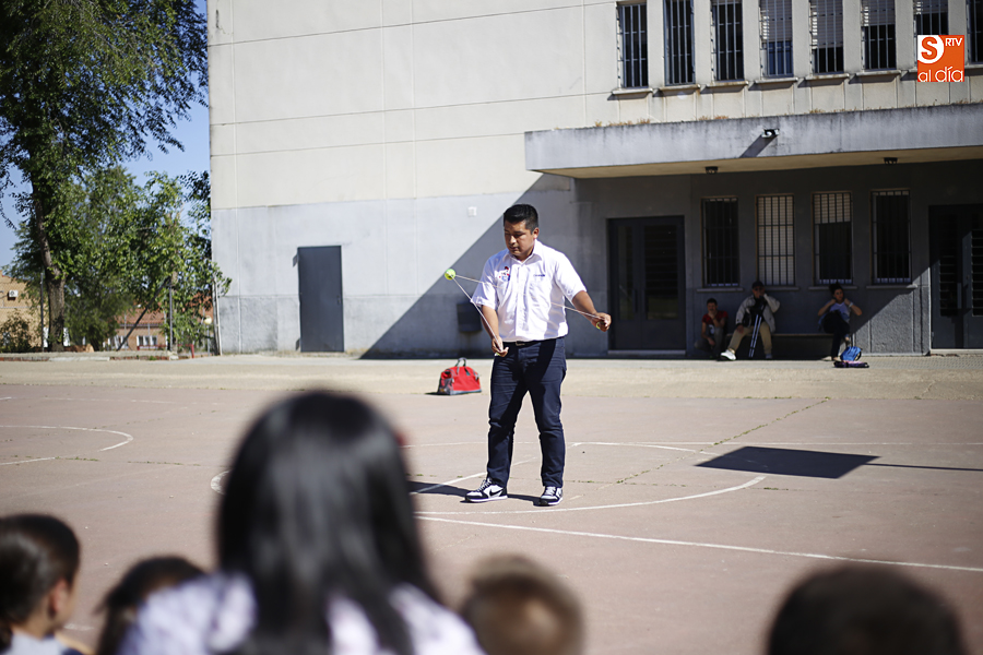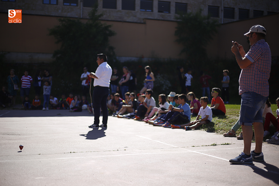 El colegio Antonio Machado ha celebrado hoy, en su última jornada festiva, el Día de la Música, con un taller de comunicación y, posteriormente, la exhibición del campeón del mundo de peonza Alejandro Torres.