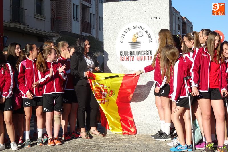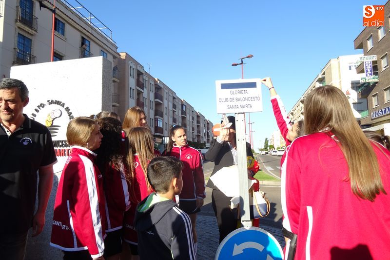 El Ayuntamiento ha querido rendir homenaje al Club Baloncesto Santa Marta con la dedicación de la rotonda situada en la Avenida de Madrid, a la altura de la calle Antonio Machado. La inauguración de la glorieta que desde esta tarde lleva el nombre del Club Baloncesto de la localidad ha estado presidida por el alcalde, David Mingo, y la concejala de Deportes, Silvia González, en un acto que ha contado con la presencia de miembros de la directiva y numerosos jugadores y jugadoras del club.