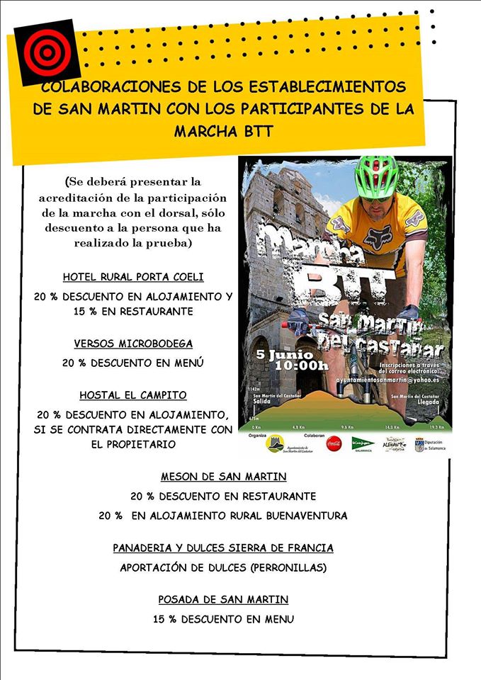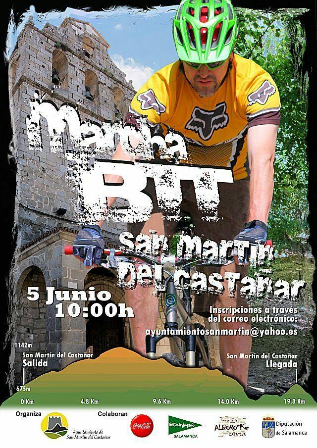 Todo está listo para la marcha BTT de San Martín del Castañar que se celebrará este domingo 5 de junio. Se trata de una ruta de 19,3 kilómetros con salida y llegada en la propia localidad de San Martín del Castañar. La salida tendrá lugar a las 10:00 horas. La prueba está organizada por el Ayuntamiento de la localidad y cuenta con la colaboración de la Diputación de Salamanca.