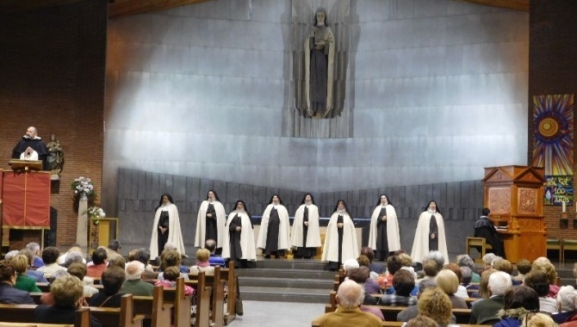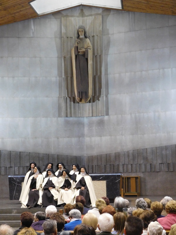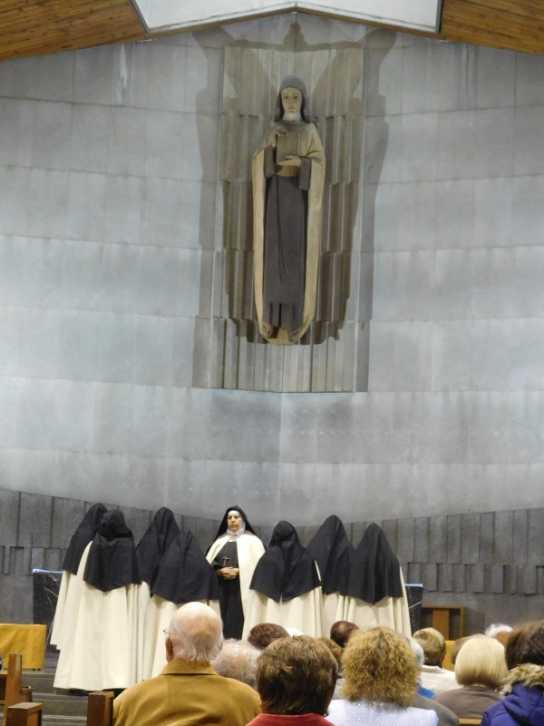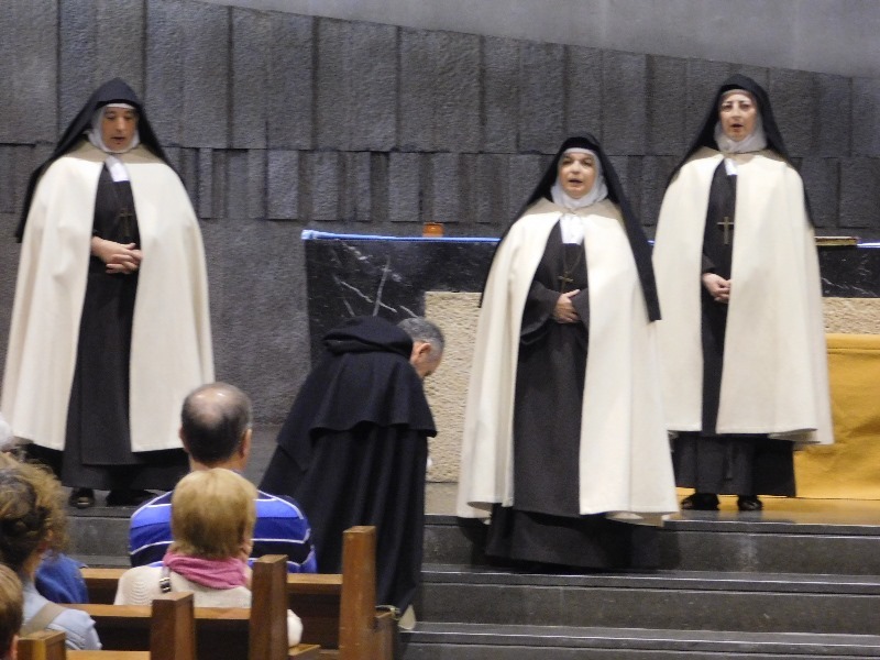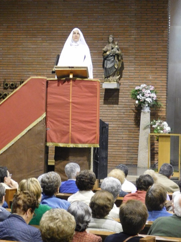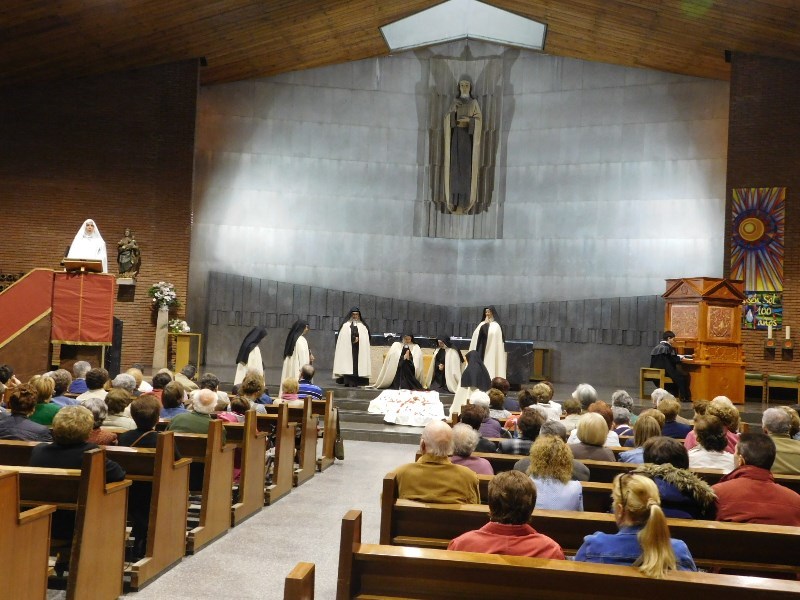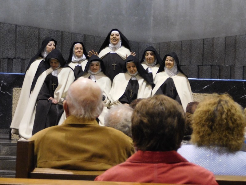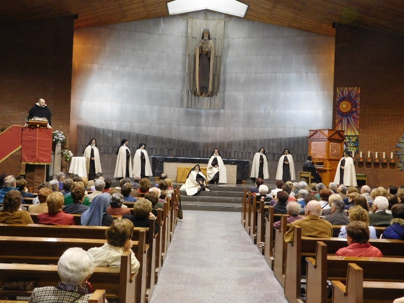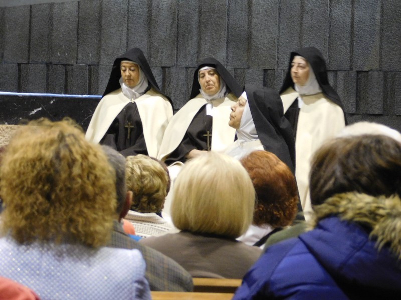 La iglesia de Santa Teresa de Valladolid, ubicada en el barrio de La Rondilla, donde todo se relaciona con la carmelita del XVI, los recibió en esta tarde del sábado 28 de mayo, para asistir a su 120 representación. Está curiosamente situada en la calle de Tomás de Torquemada, conocido y emblemático inquisidor de la época, que gustoso hubiera llevado a la hoguera a Teresa con todos sus pecados: ser mujer, inteligente, de alta formación intelectual y teológica, escritora, reivindicativa para con los marginados, y ¡ohm, Señor!, una monja enamorada del Hijo de Dios, un Jesús que lo dio todo por amor a nosotros.