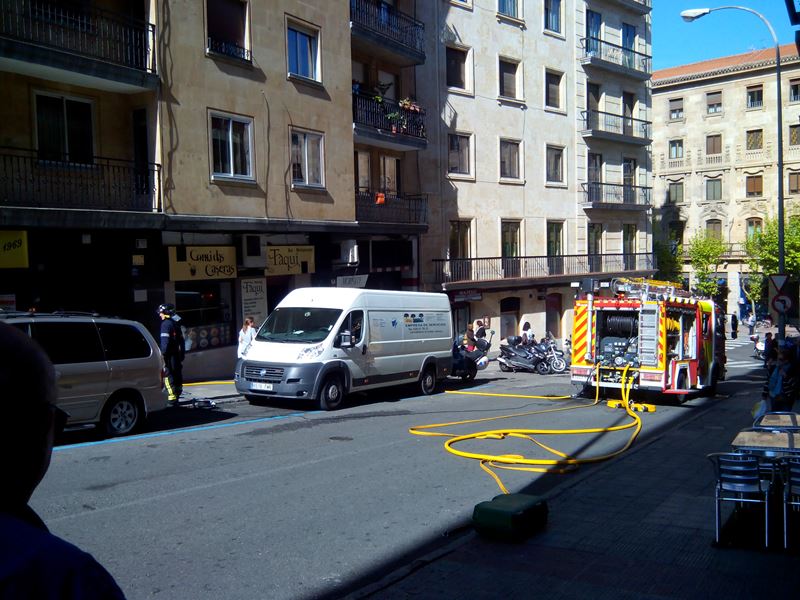 Dos dotaciones de los Bomberos han intervenido para sofocar un incendio en una vivienda, en el segundo piso del número 6-8 de la Cuesta Sancti Spíritus.