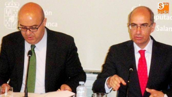 El presidente de la Diputación de Salamanca, Javier Iglesias, junto al vicepresidente de la institución y diputado de Fomento, Carlos García Sierra, presentaron en la mañana del viernes en Salamanca el Plan de Carreteras 2016 de la Diputación.