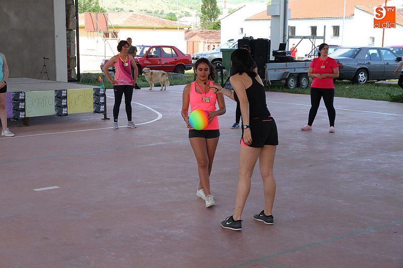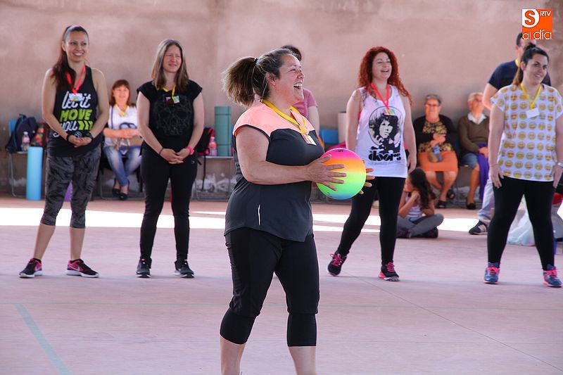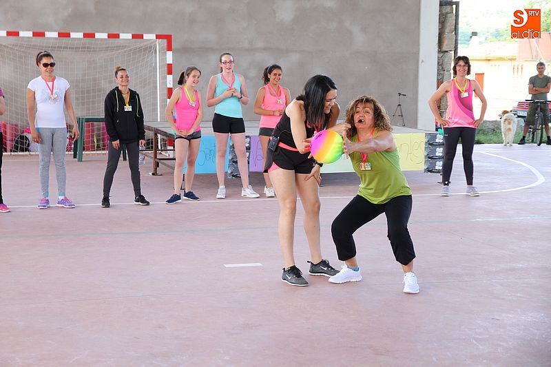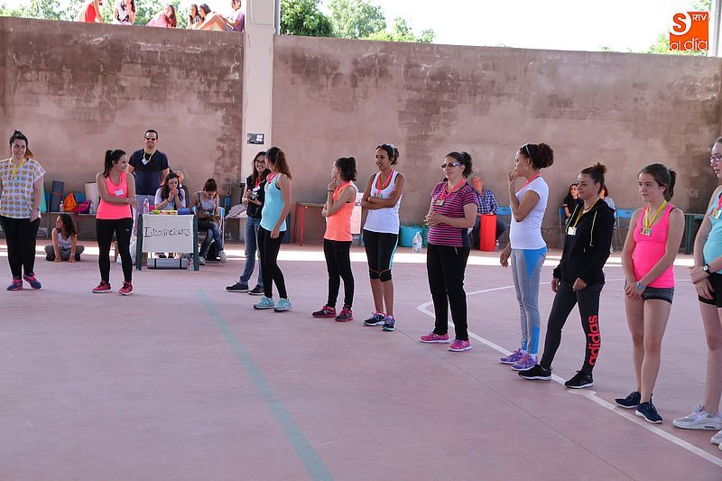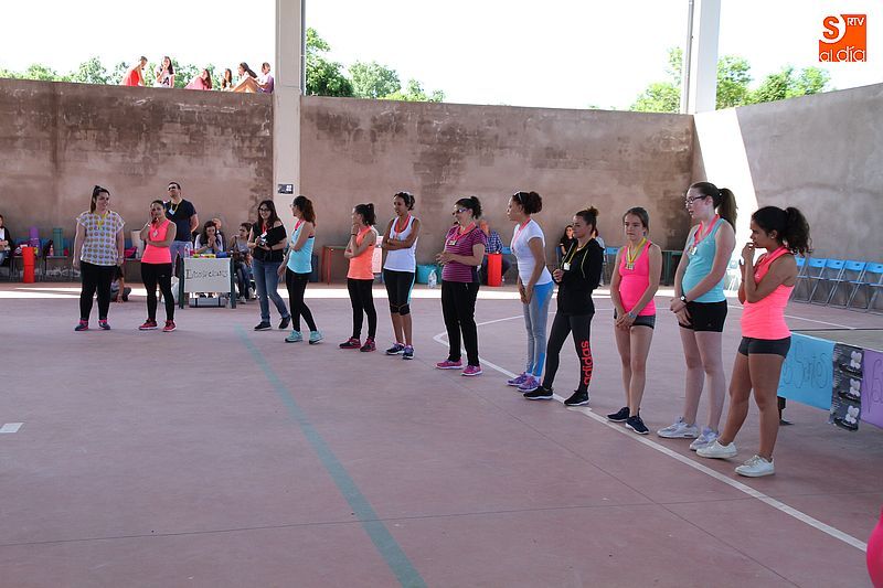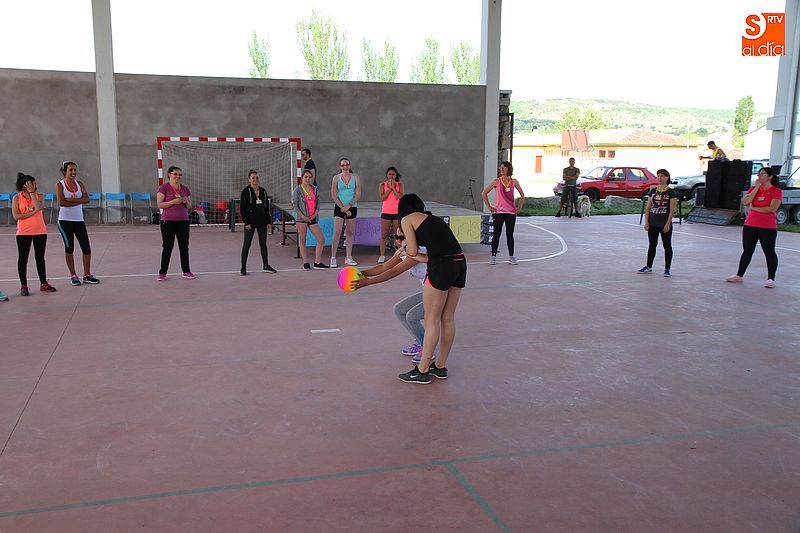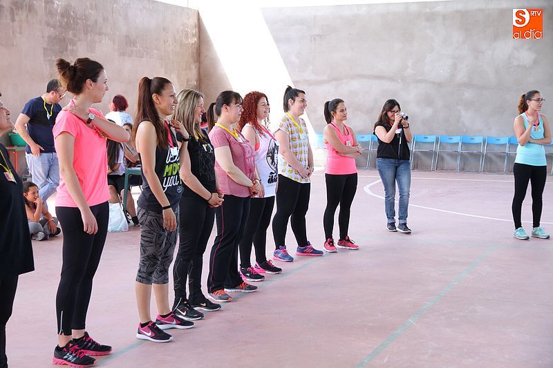 La pista cubierta de Los Santos se convirtió ayer en punto de reunión para las amantes del aerobic. Las alumnas del curso que se imparte a lo largo del año despidieron las clases con una gran fiesta. El evento se basó en dos clases especiales de aerobic a cargo de Olga Yuste e Isabel Berrio. La actividad comenzó a las cinco y media de la tarde y participó medio centenar de personas, tanto alumnas como vecinas, ya que la actividad estaba abierta a todos los públicos, disfrutaron de la propuesta deportiva y pasaron una divertida tarde colectiva. También se instalará un rastrillo benéfico a favor de la asociación La Sonrisa de Alejandro, a favor de la investigación contra el Síndrome de CACH.