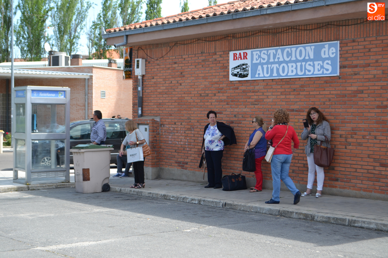 PEÑARANDA | Pasajeros y autobuses estrenaban igualmente su nueva ubicación de parada temporal, situada junto al Merca Rural