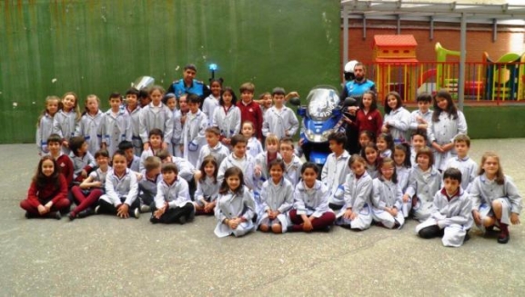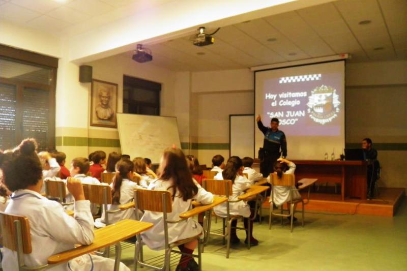 Los alumnos de 2º de Educación Primaria del Colegio San Juan Bosco recibieron este lunes la visita de la Policía Local de Salamanca. Los objetivos buscados con esta actividad son: familiarizar a los alumnos con los agentes de Seguridad Ciudadana para que se sientan seguros y acudan a ellos en caso de necesidad y también que les expliquen algunas normas de tráfico y de educación vial.