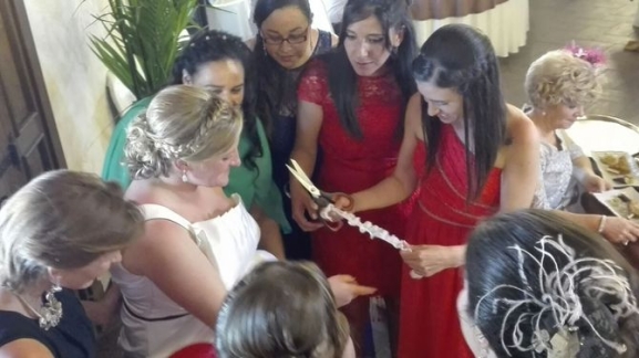 Pasada la ceremonia los novios e invitados degustaron los diferentes platos elegidos para el banquete nupcial, seguido del baile en el cual los novios sorprendieron