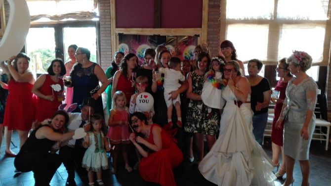 No faltó photocall, candy bar, juegos con globos y lanzamiento de ramo de novia. La fiesta continuó por la noche en Villoria con música y cena para los que fueran capaces de aguantar.