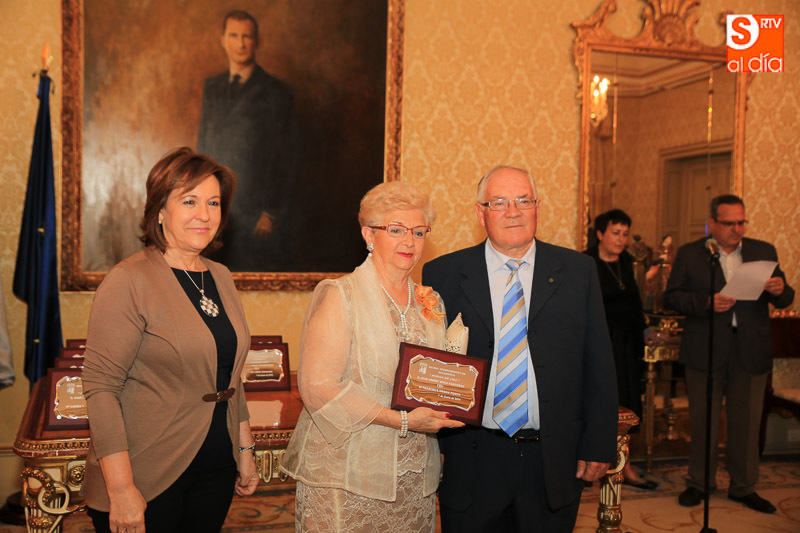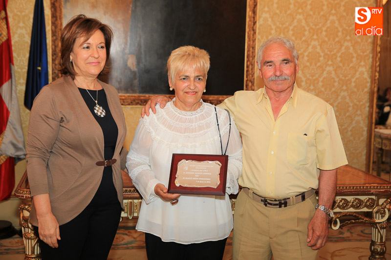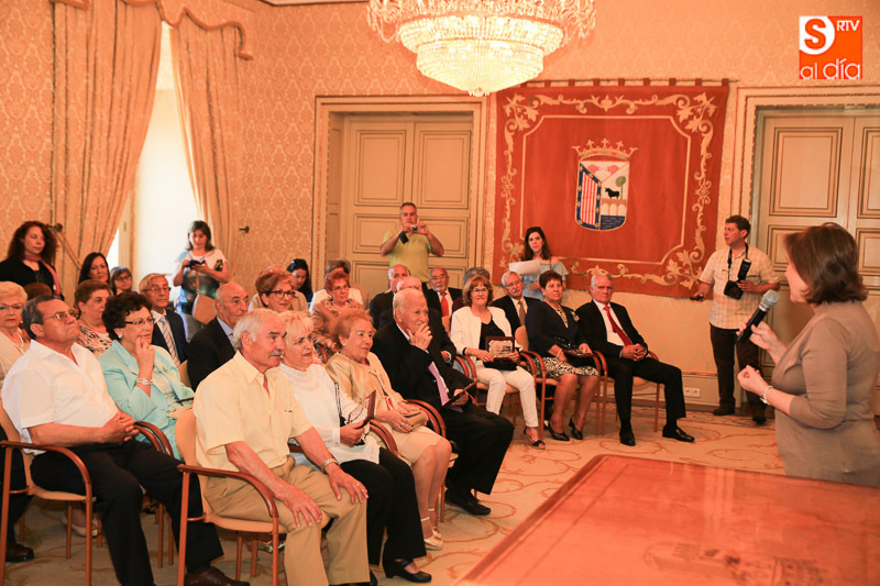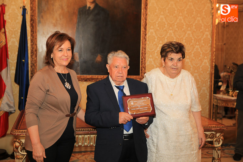 La concejala de Mayores, Isabel Macías, ha entregado las placas conmemorativas a los matrimonios que cumplen sus Bodas de Oro en un acto enmarcado en la Semana de Oro de Mayores que celebra el Ayuntamiento de Salamanca. Se trata de uno de los actos más emotivos de esta semana: el homenaje a los matrimonios de la ciudad de Salamanca que cumplen 50 años de casados. Previamente se celebró una eucaristía en la Catedral Vieja. Este martes, por la tarde, habrá un "Cineforum" donde se proyectará la película "Tomates verdes fritos", en el Centro Municipal de mayores Tierra Charra con entrada libre.