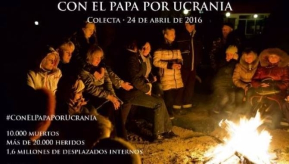 La colecta fue una iniciativa a nivel europeo del Papa Francisco, llevando precisamente la iniciativa como título Con el Papa por Ucrania, un país donde los conflictos internos en el este del país han provocado en los dos últimos años más de 10.000 muertos, 20.000 heridos y 1,6 millones de desplazados internos.