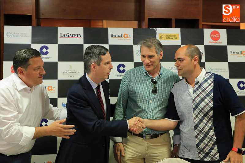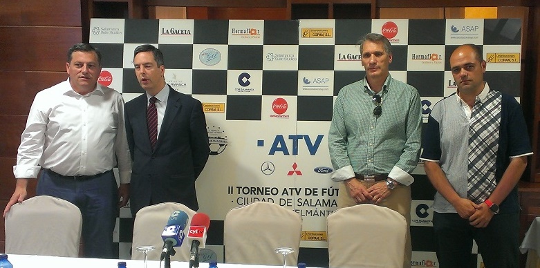 Por otra parte, ATV, concesionario en Salamanca de Mercedes, Mitsubishi y Ford, será el patrocinador principal del torneo, que cuenta también con la colaboración del Ayuntamiento de Salamanca, de la Diputación y distintas firmas comerciales. Precisamente, el concejal de Deportes, Enrique Sánchez-Guijo, participó esta tarde en la presentación oficial del torneo, que se celebró en el Hotel IBB Recoletos Coco. Sánchez-Guijo estuvo acompañado por el presidente del CF Salmantino, Carlos Martín, el director deportivo del club, Ángel Lozano, y el responsable de la organización, José Luis Rodríguez, Chelu.