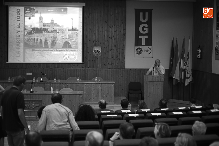 El secretario general de UGT Castilla y León, Faustino Temprano, ha destacado la importancia que para la ciudad representa la Universidad, manifestando que es "el eje vertebrador". El dirigente sindical ha participado en la jornada de UGT Salamanca que ha dado a conocer el estudio 'La parte y el todo. Impacto económico de la Universidad de Salamanca', dirigido por el catedrático Rafael Muñoz Bustillo, asegurando que este informe ayudará a Salamanca "siempre y cuando se tengan en cuenta las conclusiones del estudio". Sin embargo, considera que "no se le está sacando todo el rendimiento necesario" a esta institución académica.