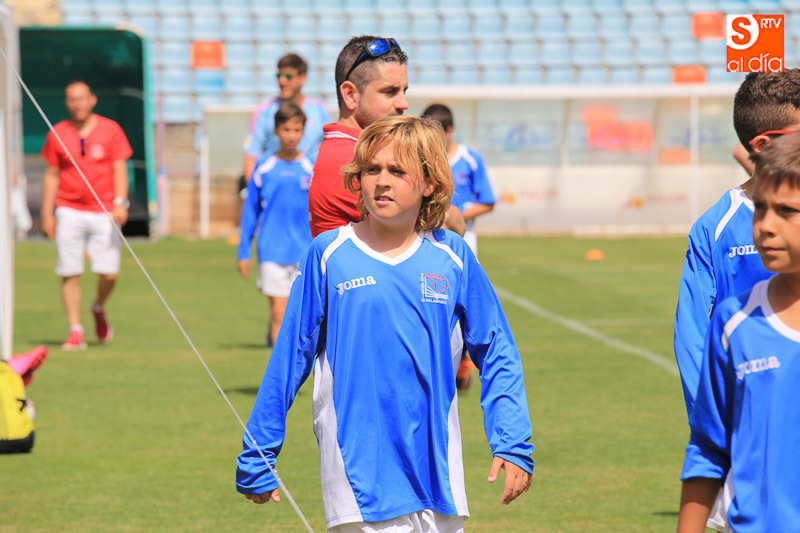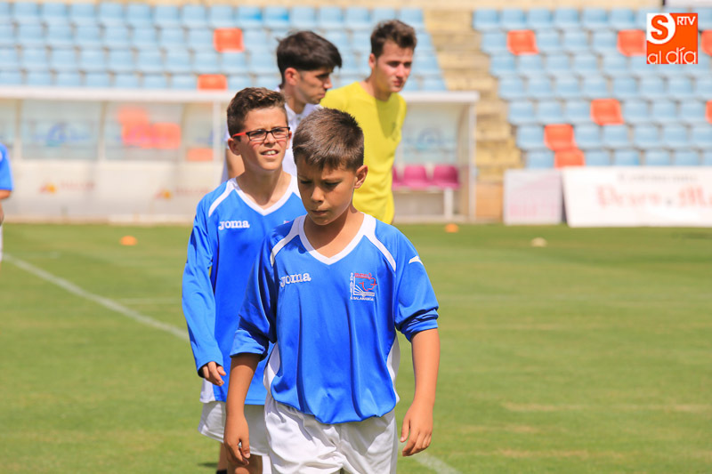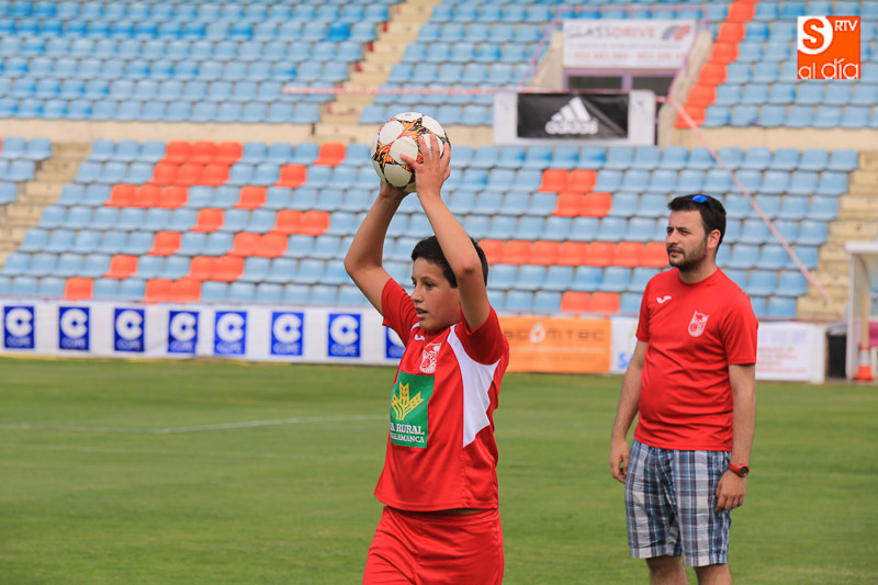 El estadio Helmántico volvió a vivir este viernes sus mejores galas. Recuerdos, historias, grandes momentos los vividos allí por todos los salmantinos en los tiempos de la UDS. Tres años después de la desaparición del club, el CF Salmantino ha vuelto a abrir el feudo a los aficionados y lo ha hecho con un espectacular Torneo ATV Fútbol 7 Ciudad de Salamanca que ha encumbrado al Sporting Carbajosa para la fase final de mañana, en la que entrarán en juego Real Madrid, Atlético de Madrid ?vigente campeón-, Celta de Vigo, Rayo Vallecano, Real Valladolid, CD Guijuelo y el anfitrión, CF Salmantino, una participación de lujo para el mejor torneo alevín de Castilla y León y llamado a ser un referente a nivel nacional.