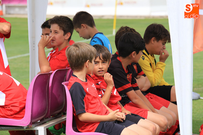 Un torneo que tuvo que ampliarse ante la participación a última hora del Helmántico, que obligó a los participantes del grupo B a disputar un encuentro más, lo que hizo todavía más titánico el esfuerzo del ganador de la fase previa, el Sporting Carbajosa, que no sólo fue primero de su grupo ganando dos partidos y empatando ante el Peñaranda, sino que jugó seguido el último partido de la primera fase, la semifinal, y la final, obligando a sus jugadores a dar todo lo que tenían físicamente. De hecho, en el arranque de la final lo acusaron, con un CD Navega que tomó la delantera, pero a medida que fueron avanzando los minutos, el Sporting Carbajosa se fue metiendo en el partido hasta remontar y ganar 2-1 para completar la fase final que se celebra hoy en el espectacular escenario del Helmántico.