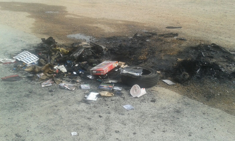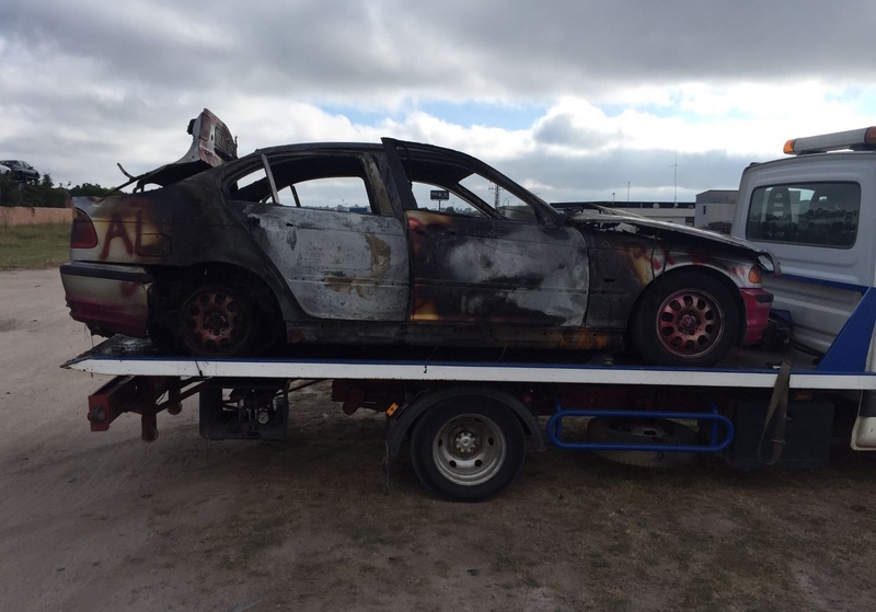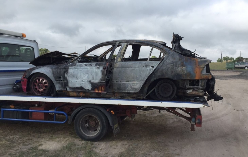 Tras quedar en libertad, se desplazó con su vehículo hasta Ciudad Rodrigo, donde en la noche del viernes quemó, en dos momentos diferentes, un contenedor y su propio coche. El incendio del vehículo tuvo lugar en las inmediaciones de la rotonda de entrada a Ciudad Rodrigo por la Carretera de Salamanca, con la curiosidad de que el hombre había vaciado previamente el coche (por ejemplo sacó la rueda de repuesto, la documentación y algunas guías), aunque estos objetos también acabaron calcinados, al igual que todo el vehículo.