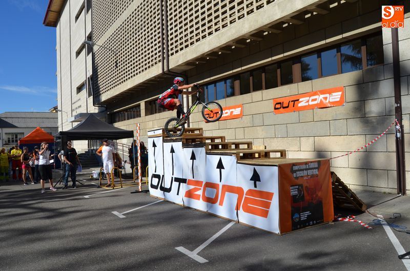 El plato fuerte de la tarde del sábado lo han puesto los chicos de Outzone, con los saltos de Escalón Vertical, en el que han quedado ganadores, en primer lugar Ion Areitio, campeón del mundo, que ha superado esta tarde el 1'78 m de altura y a quien se le ha entregado un cheque de 150 ?, el segundo Alejandro Montalvo, premiado con 100 ? y en tercer puesto Javier Alonso, campeón de Europa, ganador de 50 ?. Estos premios han sido aportados por el Ayuntamiento de Béjar.