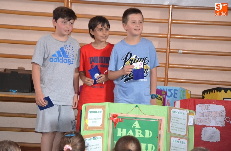 Este jurado, integrado por padres y profesores, tuvo la responsabilidad de escoger la mejor presentación del experimento, la mejor explicación del mismo y el mejor experimento en general. Sumadas las puntuaciones de los distintos miembros del jurado, en la mañana del lunes los alumnos de 5º y 6º se volvieron a dar cita en el gimnasio para conocer quiénes eran los ganadores en cada una de las tres categorías.