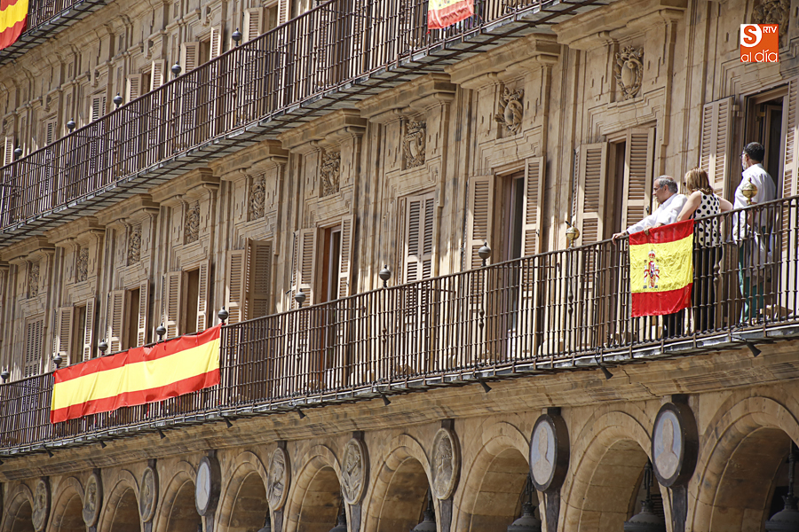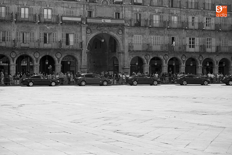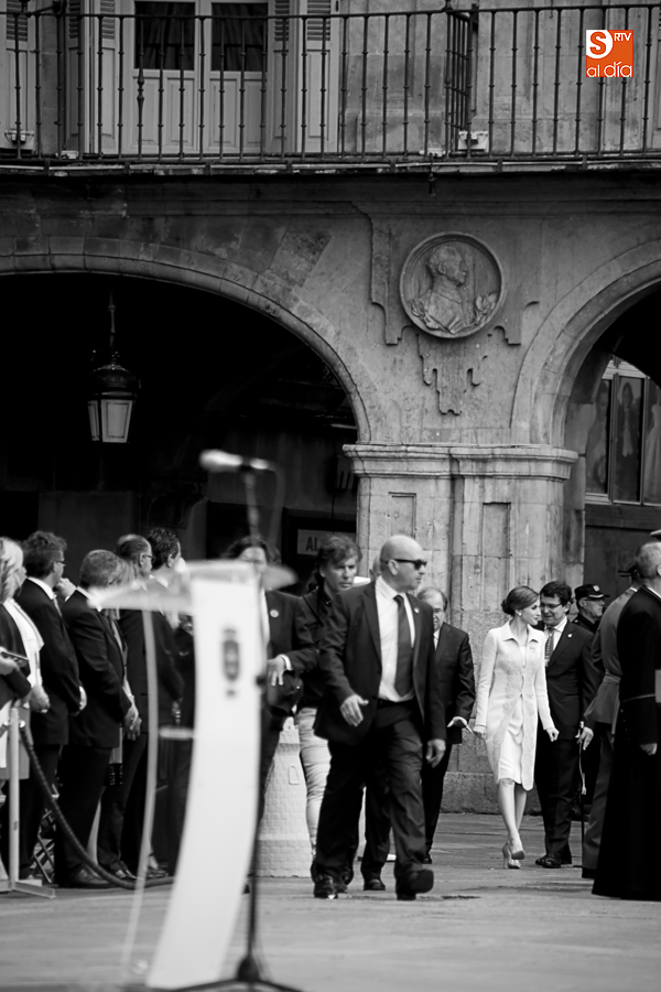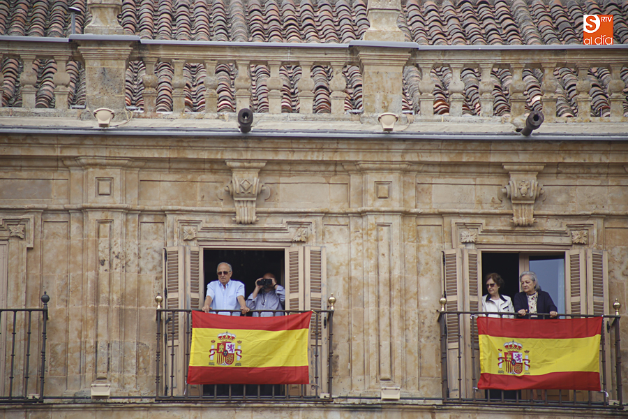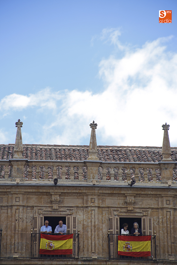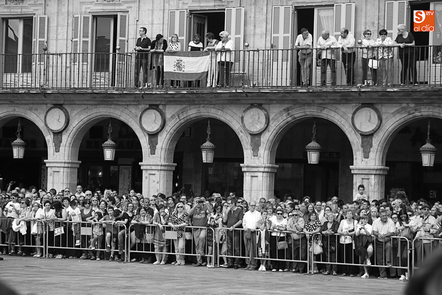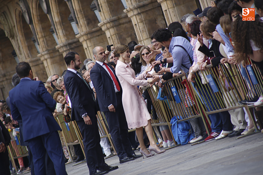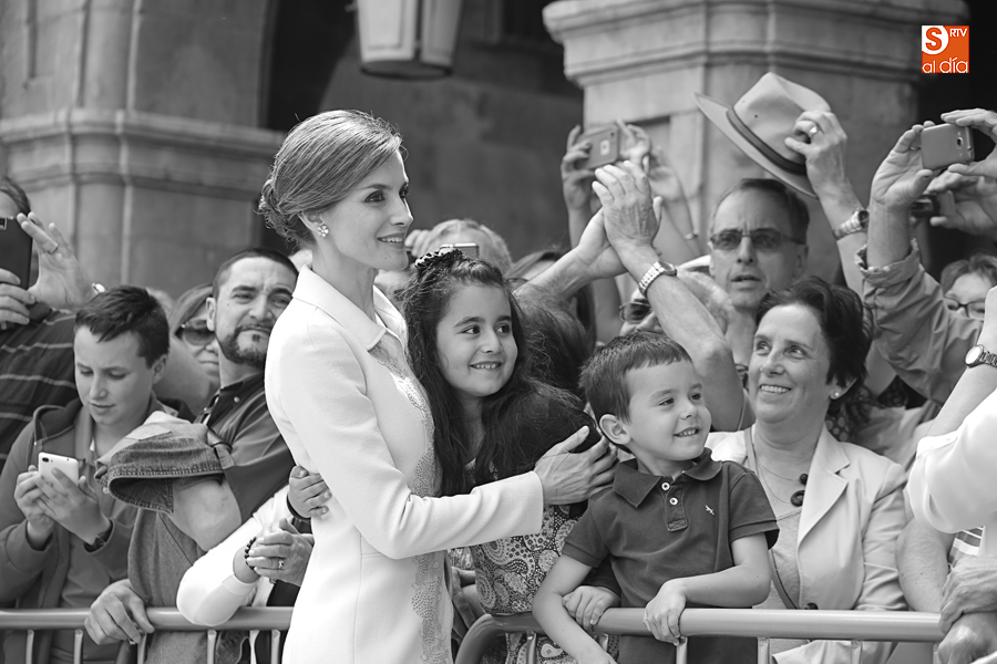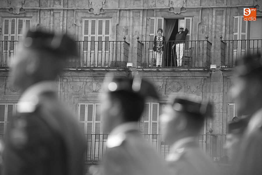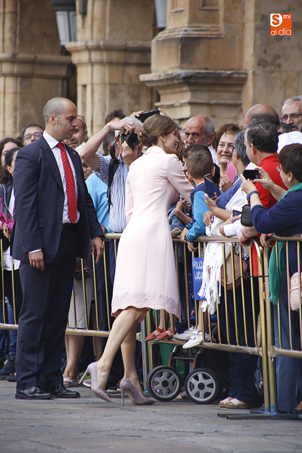 Como madrina de la bandera del Regimiento de Ingenieros, la Reina ha estado acompañada por autoridades locales y regionales, autoridades militares y por decenas de salmantinos que han seguido con gran interés el acto tras las vallas colocadas en la Plaza Mayor y desde los balcones y que han mostrado su cariño a Doña Letizia, que una vez concluido el acto, se ha acercado a saludar a las personas que allí se encontraban.