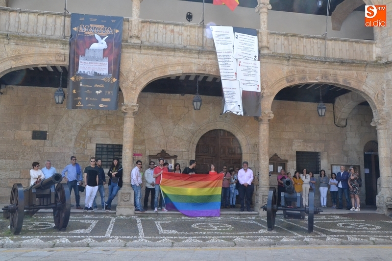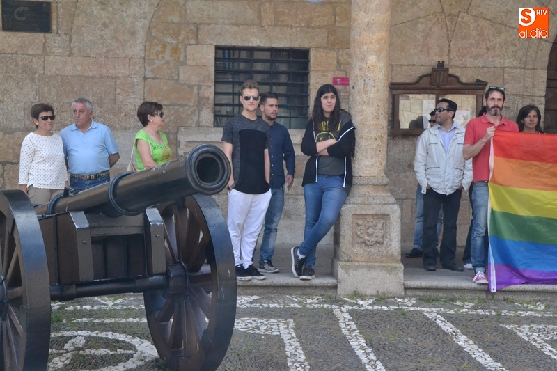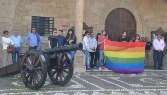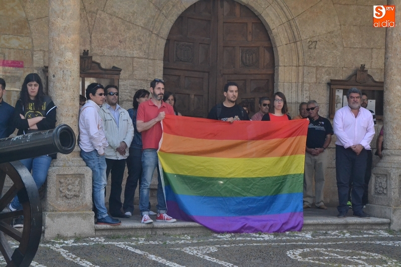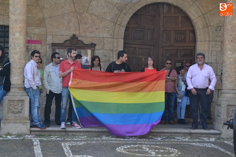 Precisamente, por el lugar donde se produjo el ataque, la concentración que se desarrolló en los soportales de la Casa Consistorial de Ciudad Rodrigo estuvo presidida por la bandera arcoíris, símbolo de la comunidad LGTB (lesbianas, gais, transexuales y bisexuales).