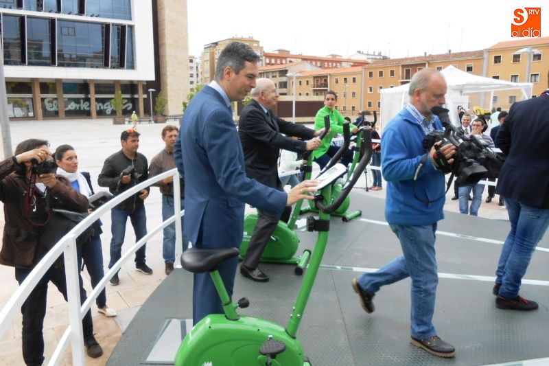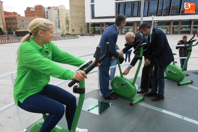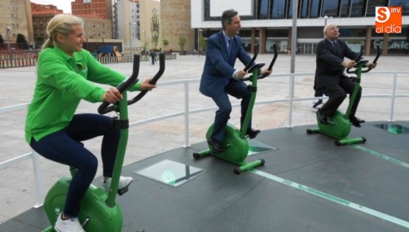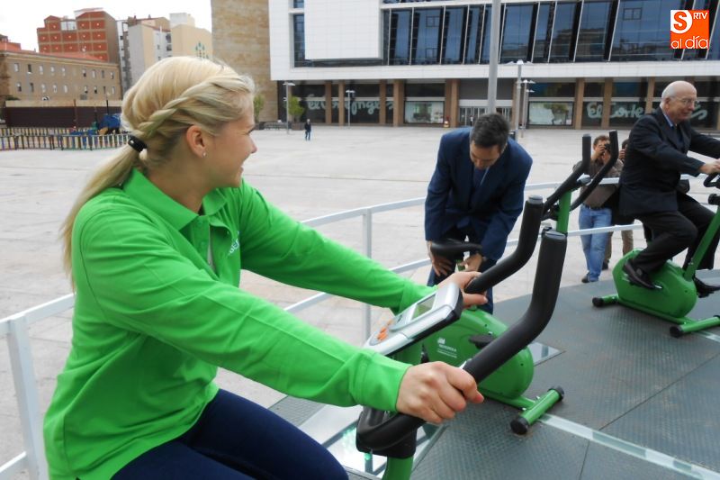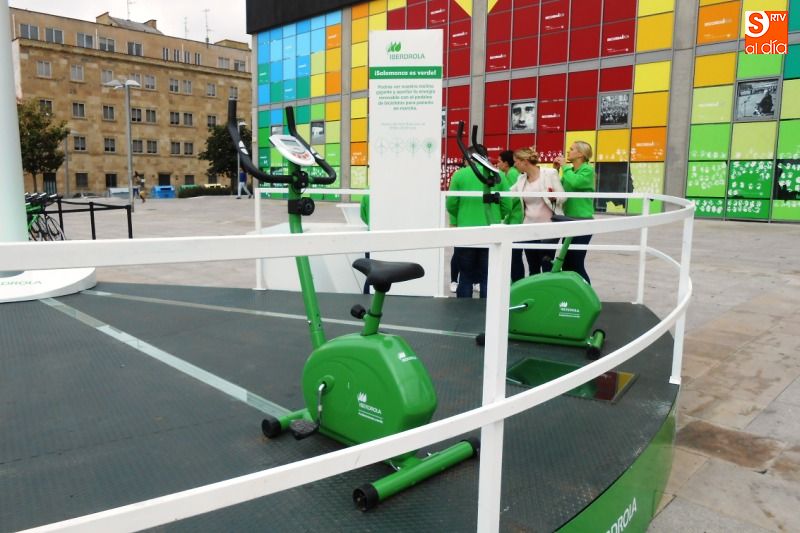 Los salmantinos podrán hacer girar las palas de este aerogenerador de más de siete metros de altura gracias a la energía cinética generada con bicicletas