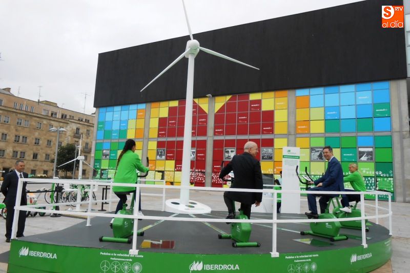 Este aerogenerador representa la apuesta de Iberdrola por las energías renovables y busca la participación de los ciudadanos puesto que sus palas girarán dependiendo de la fuerza con el que pedaleen en las bicicletas estáticas puestas por la compañía junto al molino.