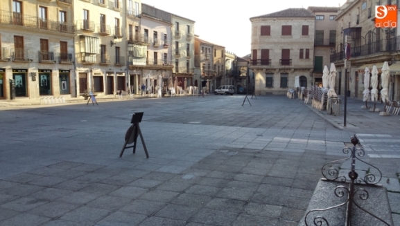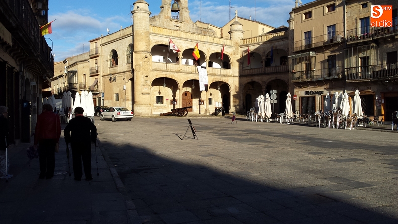 La Plaza Mayor de Ciudad Rodrigo vivió a lo largo del miércoles su 'primer día de verano', aunque curiosamente la jornada estuvo muy desapacible, con varios chaparrones puntuales, lo que hizo que las terrazas de los bares no se pudieran desplegar con normalidad.