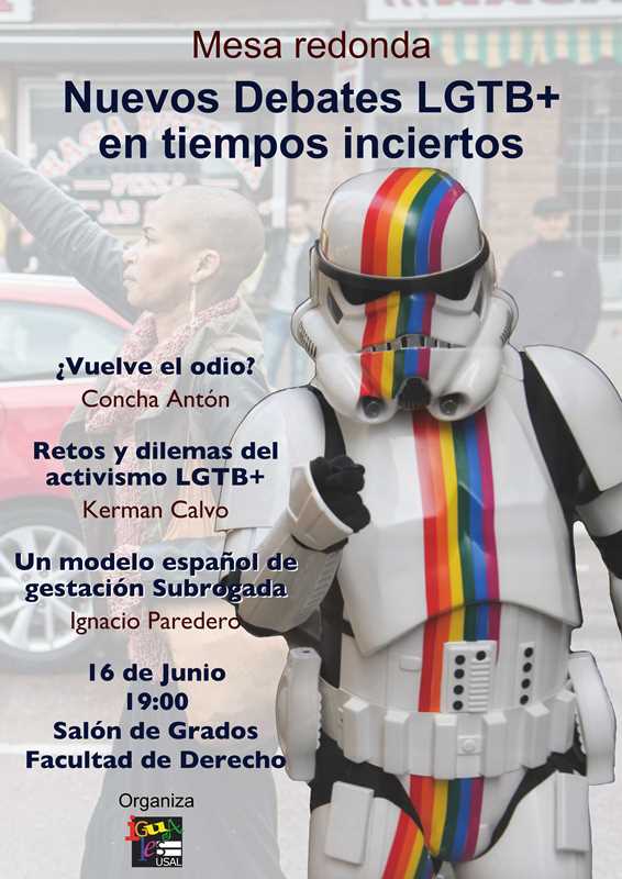 Como anticipo, este jueves, 16 de junio, a las 19.00 horas, en el Salón de Actos de la Facultad de Derecho, tendrá lugar una mesa redonda sobre 'nuevos debates LGTB+ en tiempos inciertos", en la que intervendrán Concha Antón, profesora de Sociología de la Usal experta en delitos de odio, Germán Calvo, docente de Sociología, que abordará los retos los activistas, y el propio Ignacio Paredero, que imparte clases en Derecho y explicará un nuevo modelo español de gestación subrogada.