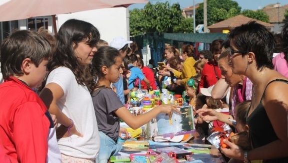 Desde las 9,30 horas de la mañana, los niños, profesores y padres están al frente del rastrillo, aprovechando que en esta jornada se celebra un concurrido mercadillo popular por las calles próximas al parque municipal.