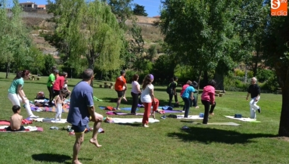 La isla de El Picón de Ciudad Rodrigo fue escenario en la mañana del sábado de una clase abierta de yoga, a la que pudieron apuntarse todos aquellos que lo desearon, participando finalmente una veintena de personas de diversas edades. Esta sesión a orillas del río Águeda, desarrollada en una mañana de creciente calor, fue totalmente gratuita.