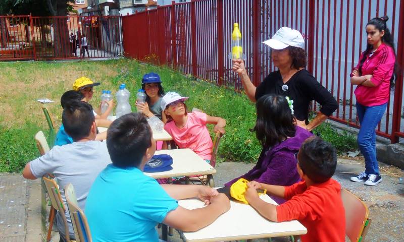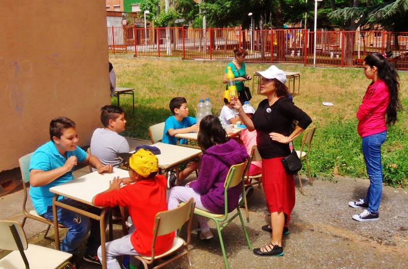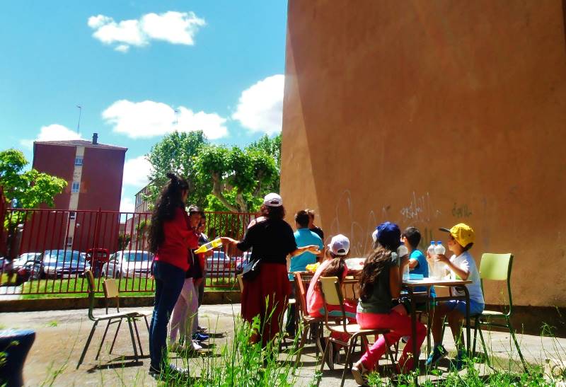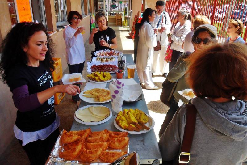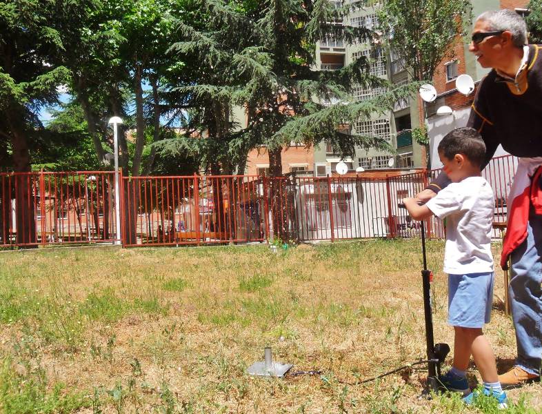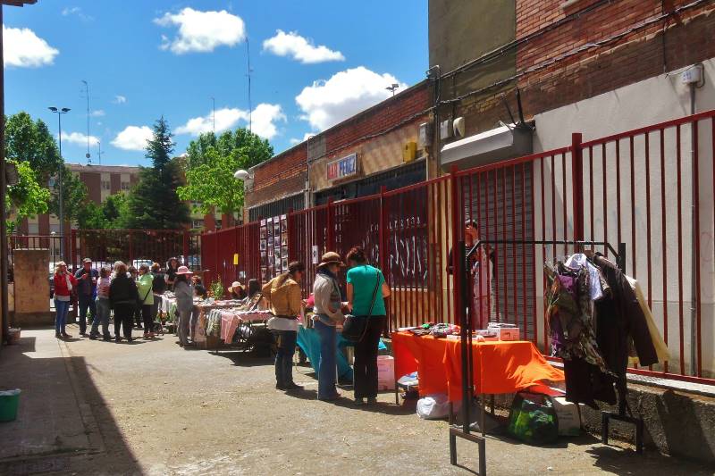 En esta celebración de mercadillo de recaudo para el mantenimiento de la iniciativa, cada cual colabora trayendo bebida, o una fuente de empanadillas, unas ricas tortillas, unos bollos horneados? Desde las 11 de esta mañana, y hasta las 20 horas, las horas se llenan de actividades, de cuentacuentos, de charlas, de talleres, sesiones de Tai Chi, de música popular. He asistido a uno de papiroflexia, a otro de ciencia en la que los niños aprendían a hacer cohetes levantiscos con unas botellas de refrescos y las posibilidades escondidas, químicas y mágicas que tienen el agua y el aire. Y qué pirotecnias de risa buena se oía entre los niños cuando el artefacto improvisado se elevaba gracias al ingenio aprendido.