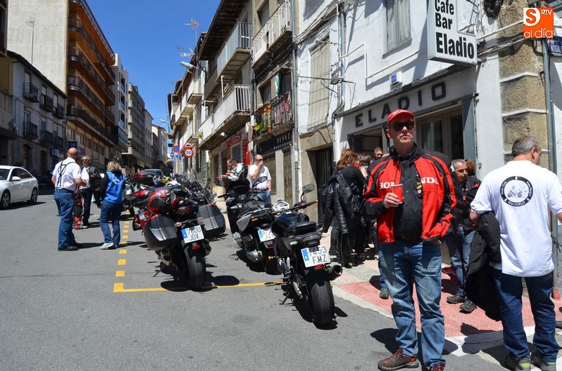 La novena concentración de motos Pata Negra, que se está celebrando en Guijuelo este fin de semana, ha parado en Béjar para probar el tradicional calderillo, dentro de la ruta programada para esta mañana que ha pasado por Piedrahita, El Barco de Ávila, Béjar y Cristóbal, finalizando con una comida de hermandad en la villa.