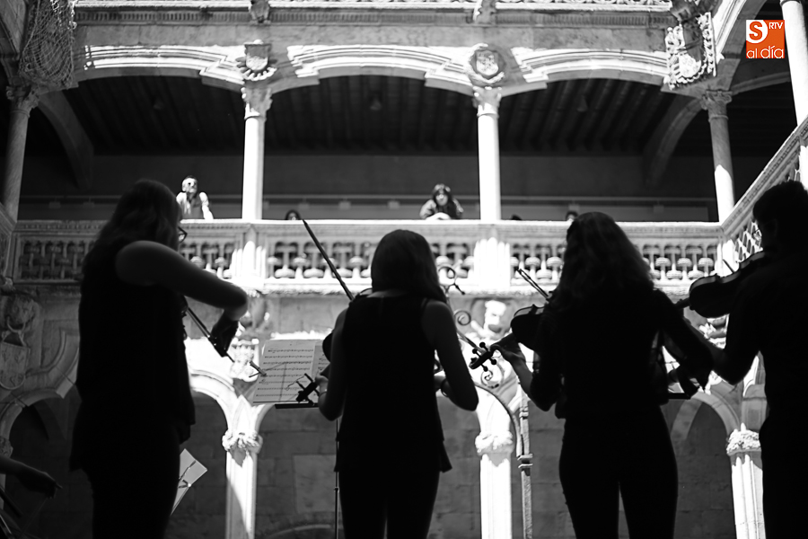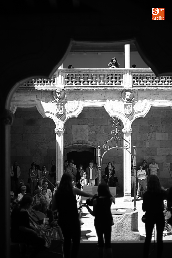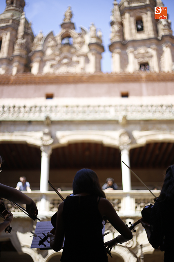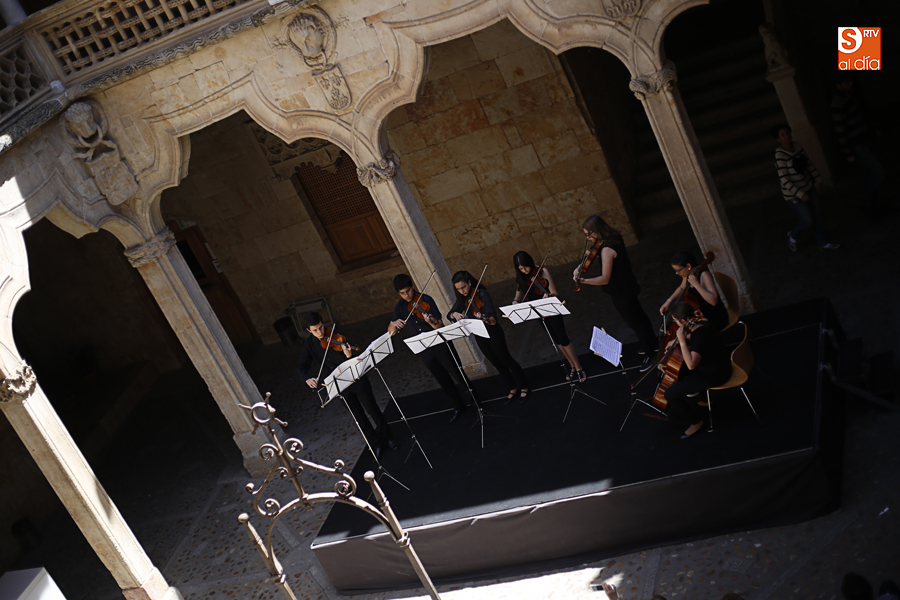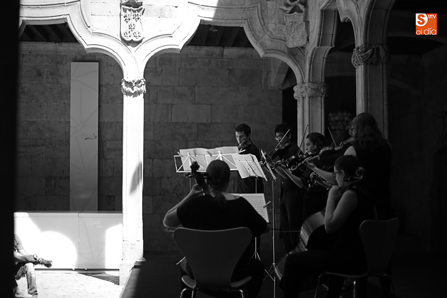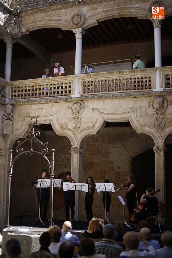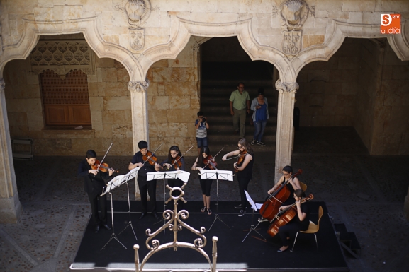 Con motivo de la conclusión del curso escolar y para anticipar la celebración, el 21 de junio, del Día Europeo de la Música, la Joven Orquesta Vaguada de la Palma se ha presentado al público Salmantino con un cuidado concierto en el patio de la Casa de las Conchas.