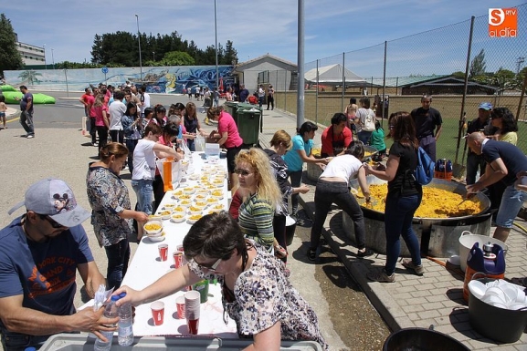 La bajada de las piscinas acogió un año más la tradicional convivencia escolar, organizada por Ayuntamiento y Ampas, en la que participaron cientos de personas, principalmente alumnos de los colegios y el instituto de la villa y sus familias. Al igual que en años anteriores, el Ayuntamiento de Guijuelo ofreció una paellada para todos los presentes junto a la puerta de las piscinas. En total se cocinaron 800 raciones que degustaron las familias a la sombra de los árboles cercanos. No faltaron los juegos infantiles, instalándose los habituales hinchables y un novedoso tobogán gigante que atrajo la atención de los presentes. Las piscinas municipales cumplieron también con su tradicional día de puertas abiertas que muchos aprovecharon para darse el primer chapuzón de la temporada.