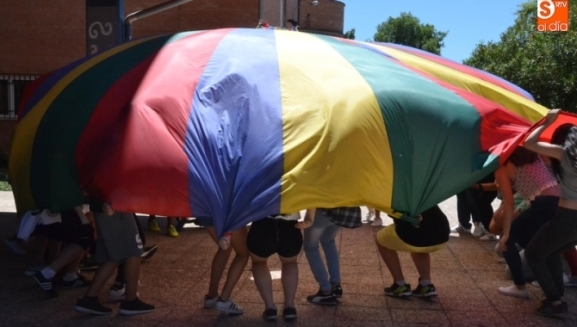 A la conclusión de la gymkana regresaron al centro, para continuar realizando algunos juegos y bailes con un trasfondo concienciador. Así, por ejemplo, emplearon un paracaídas para simular las condiciones en las que viven los refugiados en chabolas.