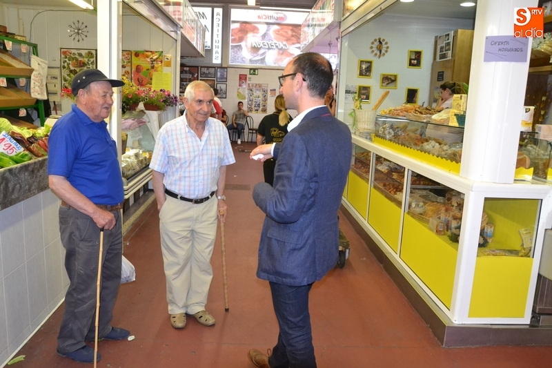 En Ciudad Rodrigo, el candidato del PSOE, junto a otros miembros socialistas como su secretario general en Miróbriga, Juan Luis Cepa y los concejales Carlos Fernández Chanca y Azahara Martín, visitaron en primer lugar el Mercado de Abastos, donde repartieron bolígrafos y caramelos, antes de recorrer algunos puntos del centro histórico.